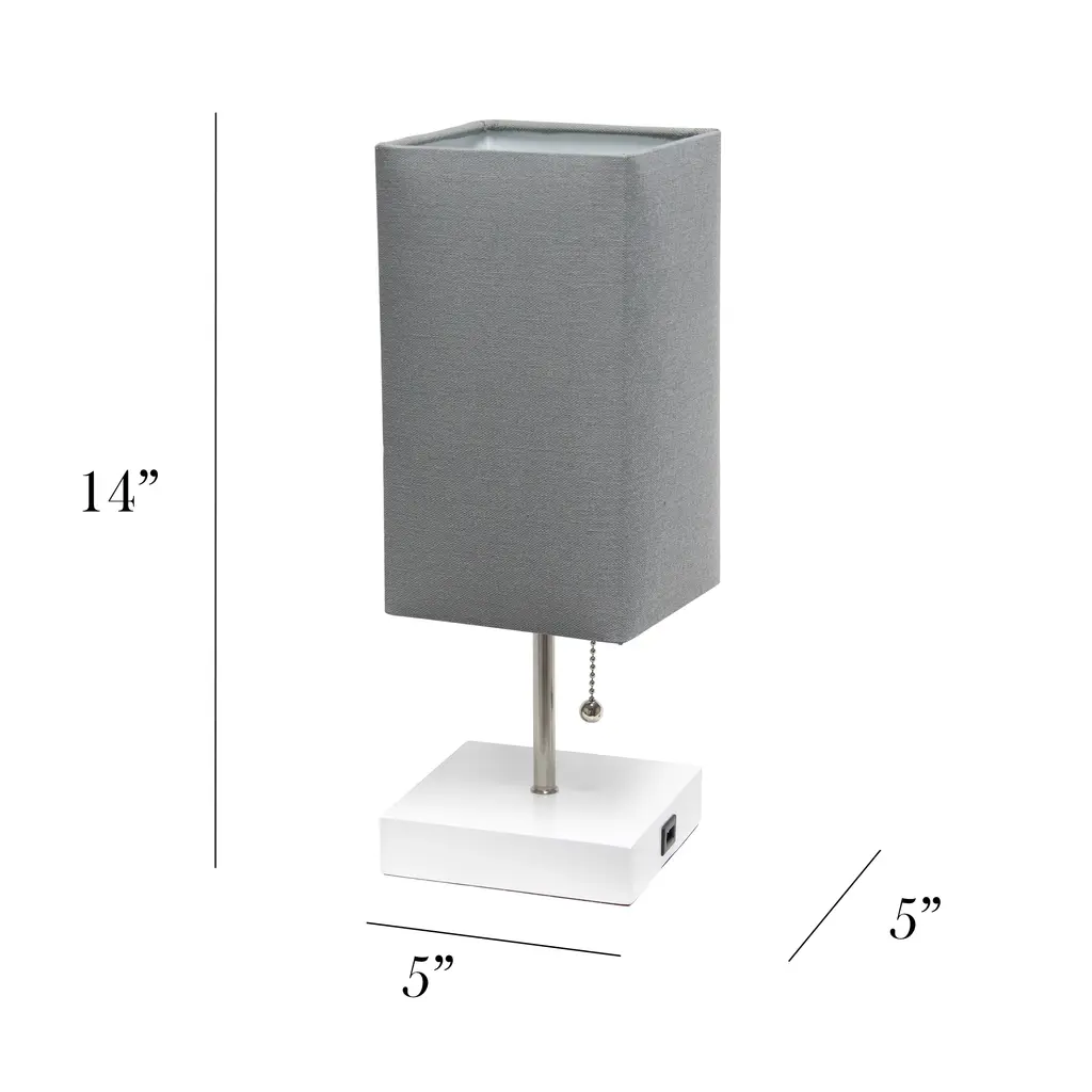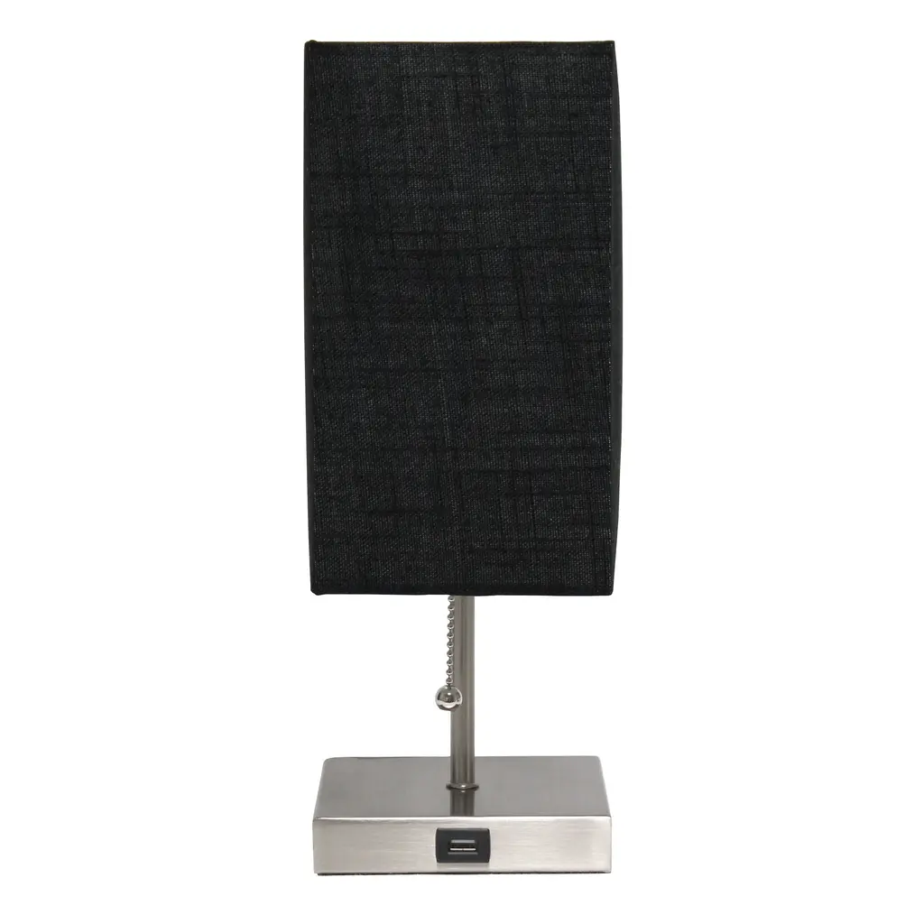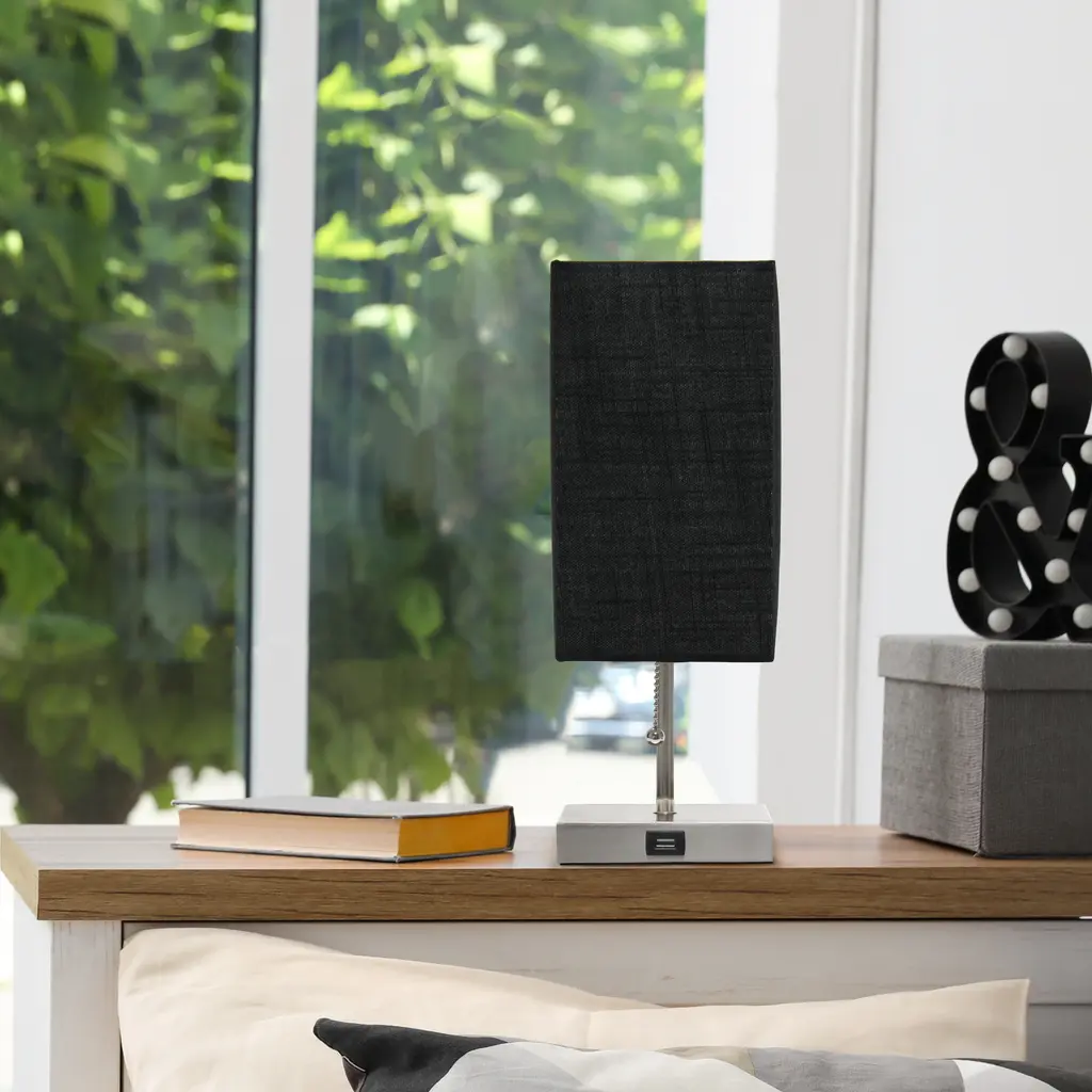 Simple Designs Petite Stick Lamp With Usb Charging Port Fabric Shade - Black Shade/white Base