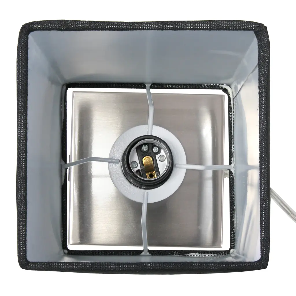 Simple yet fun, this fashionable table lamp features a brushed nickel base and a fabric shade. It comes equipped with a USB seated in the base for use to charge mobile phones, handheld games, tablets, and other small electronics. This lamp will add a fabulous flair to any room. Perfect for bedrooms, kids and teens, college dorms, nurseries, or fun offices!