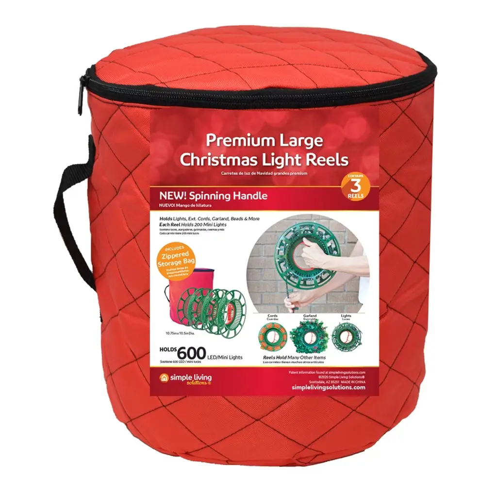 Simple Living Solutions 3 Reel Red Christmas Light Set Quilted Storage Bag