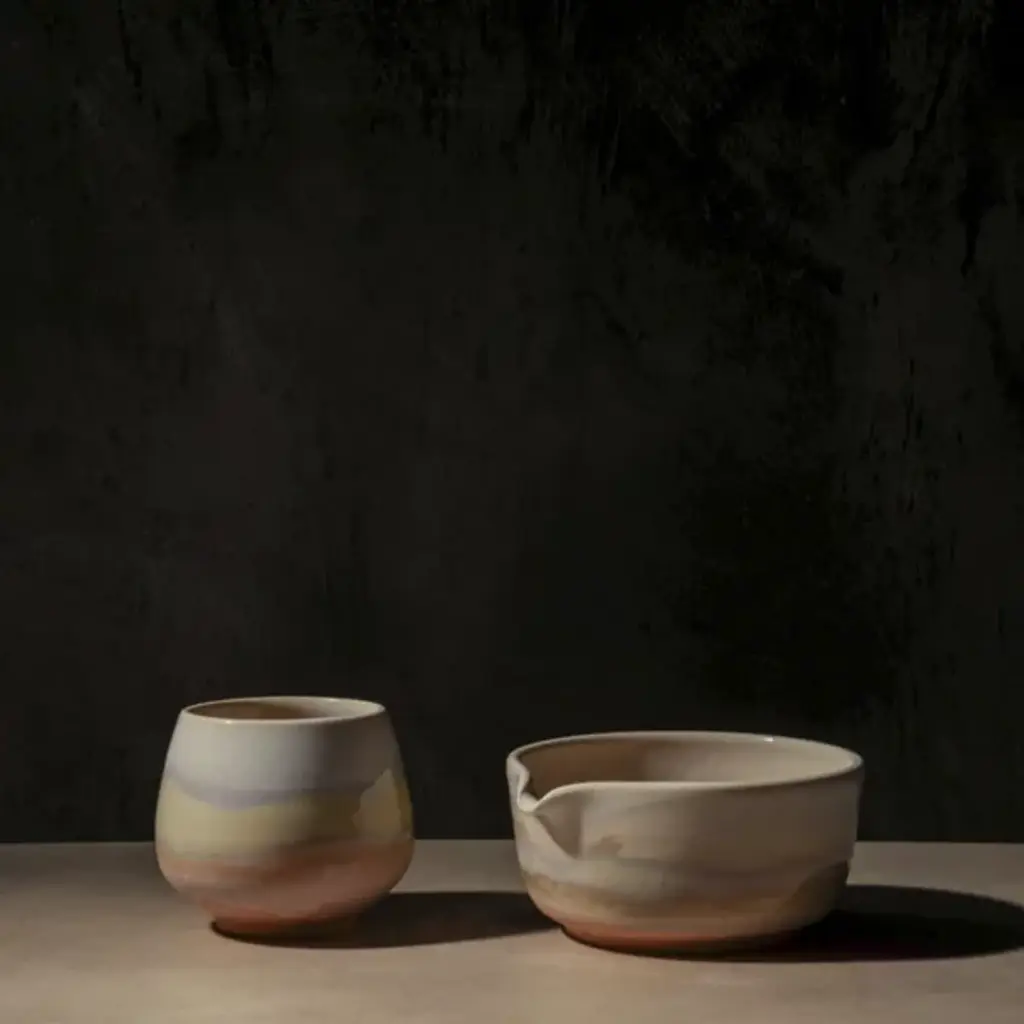 The Simple Matcha Set from OWIU Goods includes a handcrafted cup and bowl thoughtfully designed for an effortless matcha experience. Made in the United States from locally sourced clay and finished with a food-safe glaze, this minimalist set blends functionality with timeless craftsmanship, bringing elegance and simplicity to your tea ritual or daily routine.