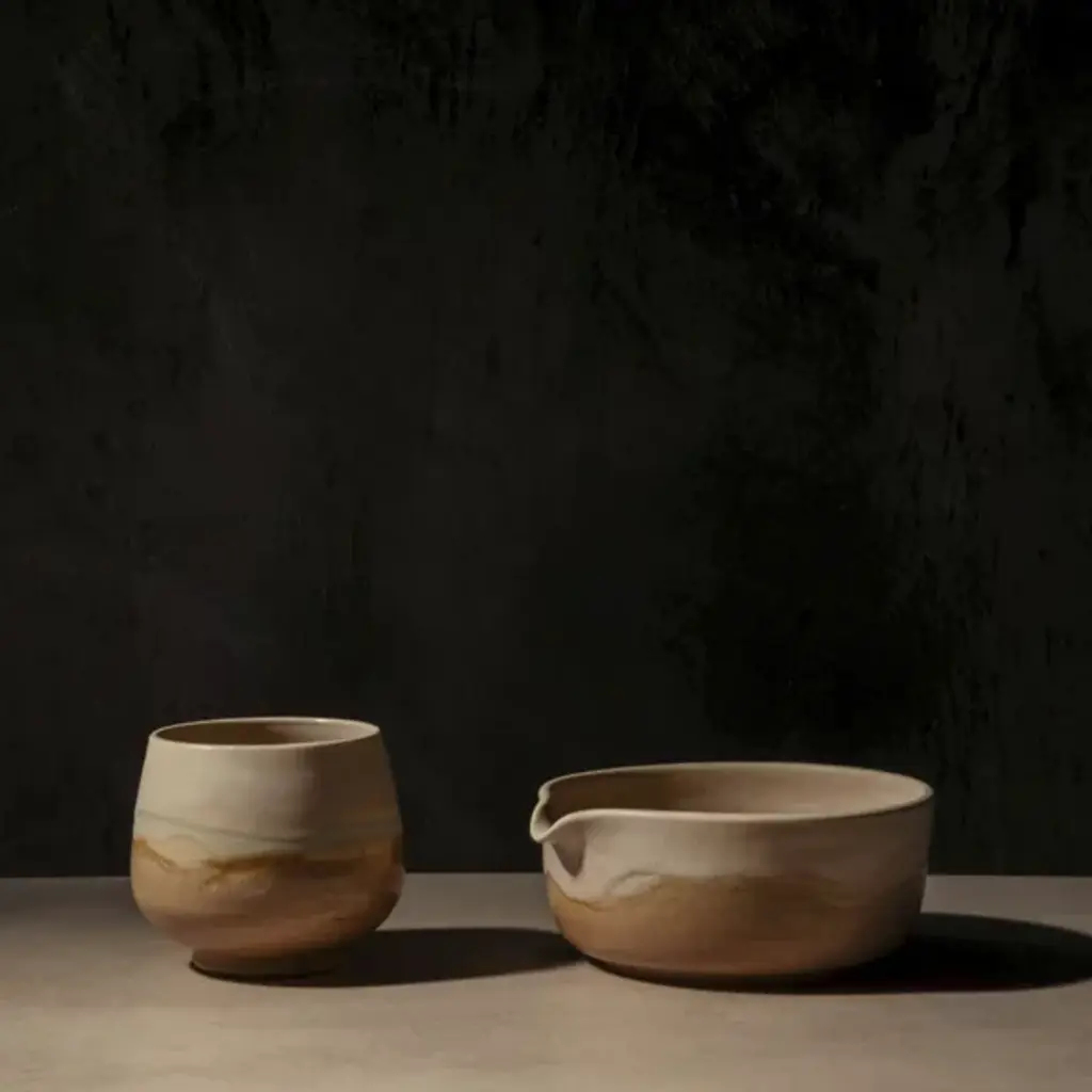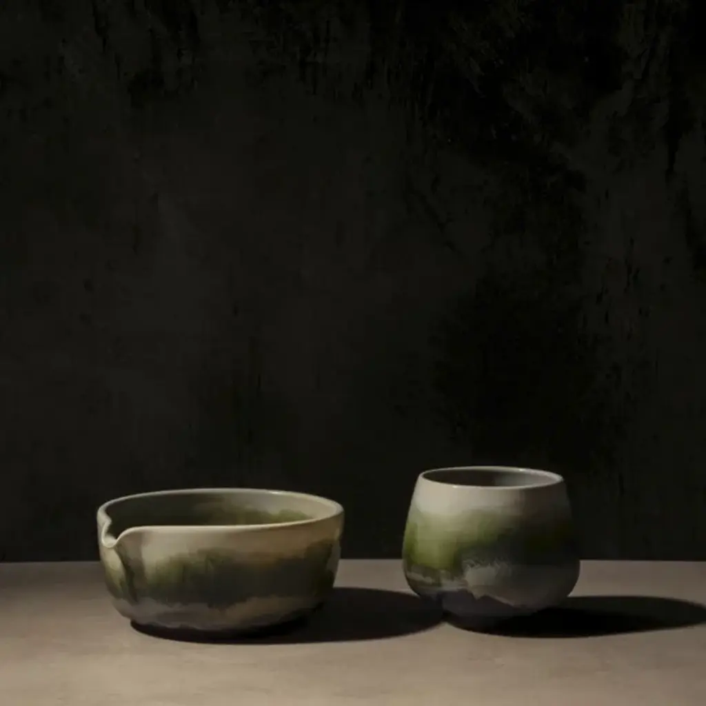 The Simple Matcha Set from OWIU Goods includes a handcrafted cup and bowl thoughtfully designed for an effortless matcha experience. Made in the United States from locally sourced clay and finished with a food-safe glaze, this minimalist set blends functionality with timeless craftsmanship, bringing elegance and simplicity to your tea ritual or daily routine.