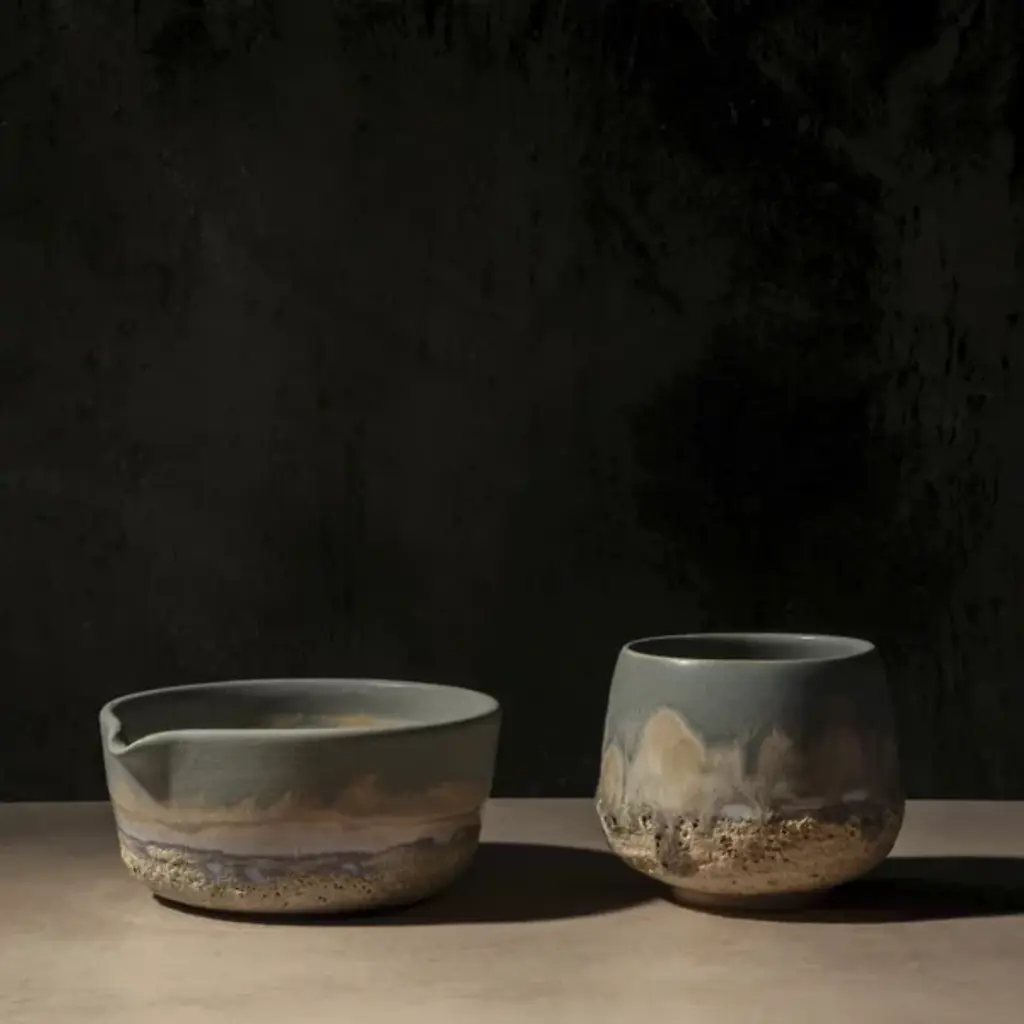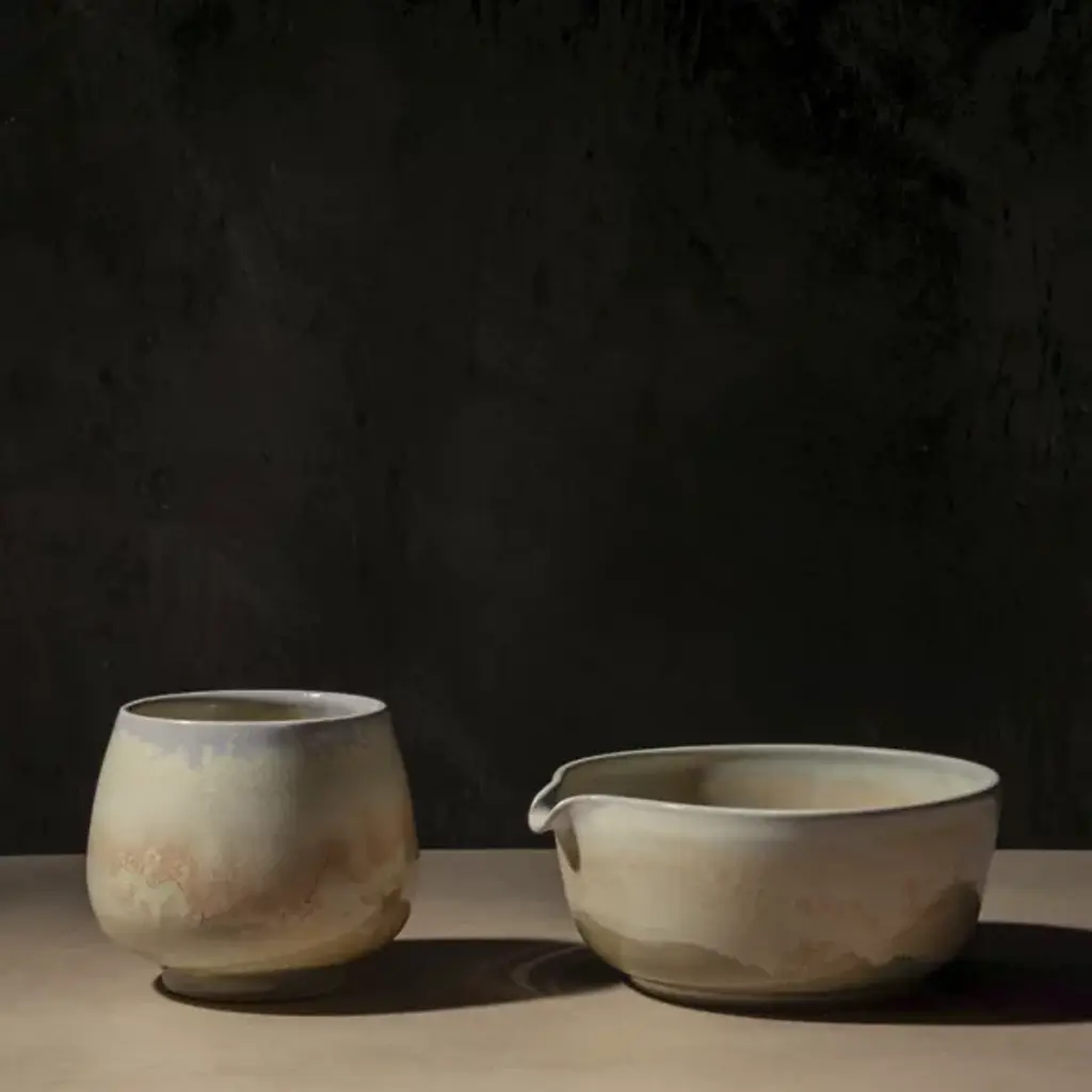 The Simple Matcha Set from OWIU Goods includes a handcrafted cup and bowl thoughtfully designed for an effortless matcha experience. Made in the United States from locally sourced clay and finished with a food-safe glaze, this minimalist set blends functionality with timeless craftsmanship, bringing elegance and simplicity to your tea ritual or daily routine.