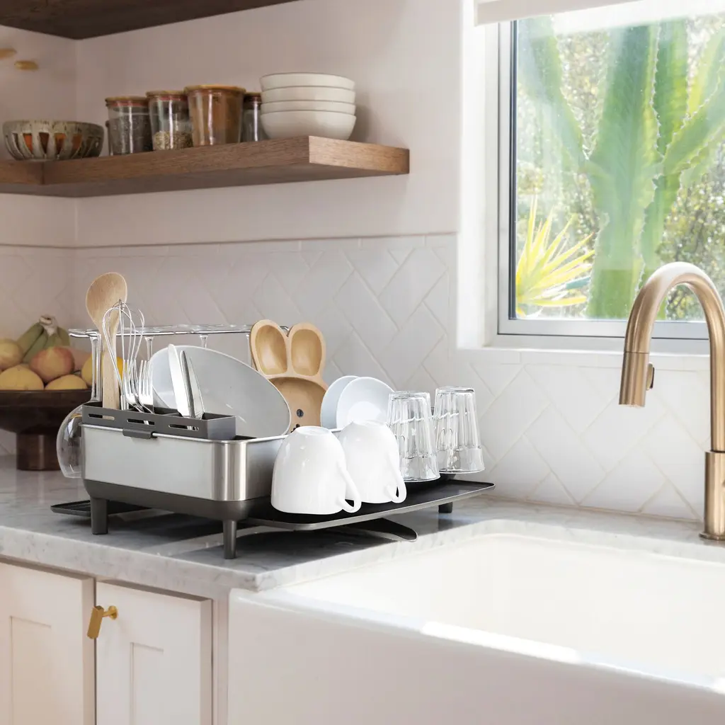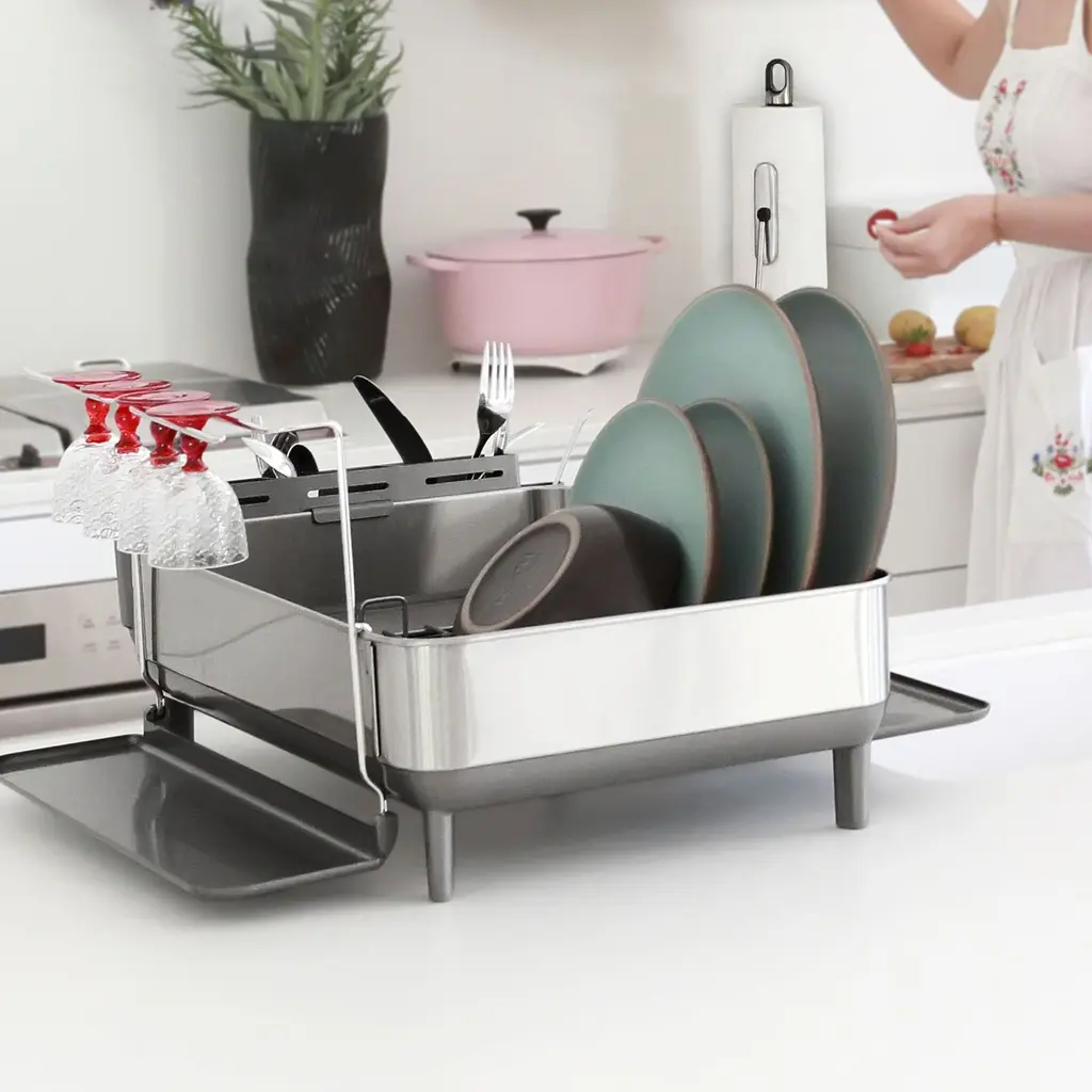 simplehuman designs innovative home essentials. Modern design with functional features. Swivel spout can drain water right into the sink. Made from fingerprint-proof stainless steel.