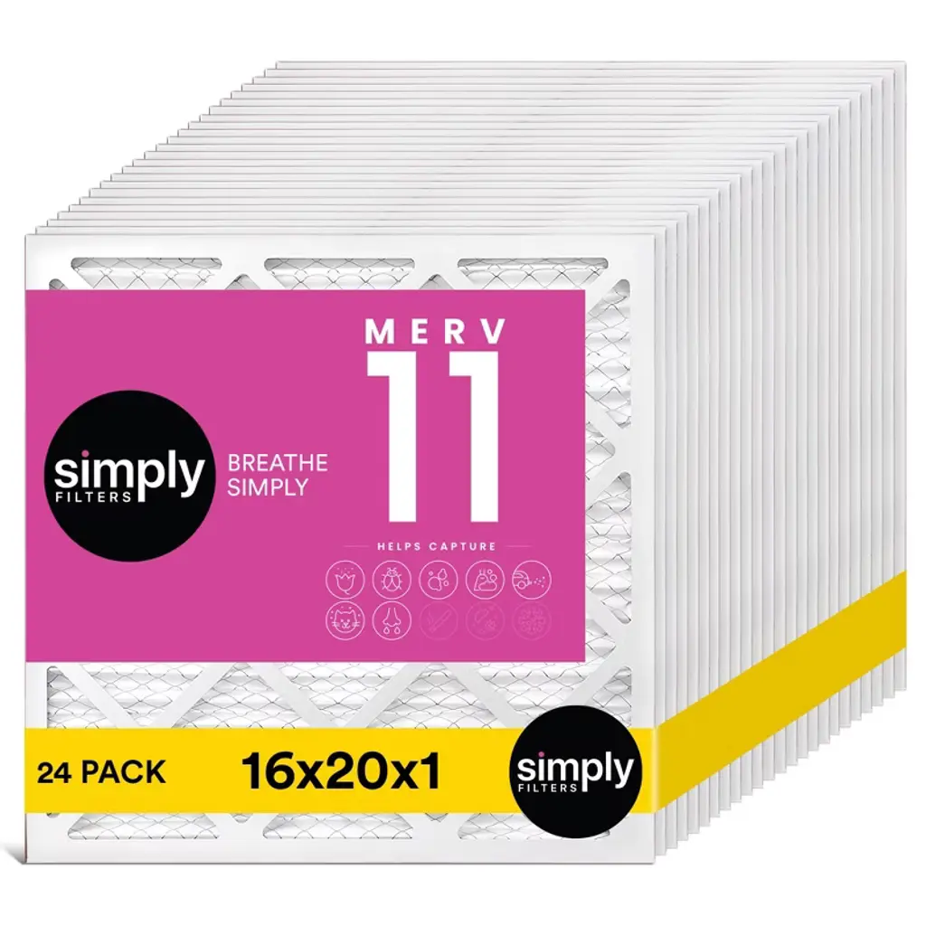 Simply 20x20x1 Air Filter, Merv 11, Mpr 1000, 24 Pack, Furnace Air Filter For Hvac (Actual Size: 19.75"x19.75"x0.75") Dust, Pet, & Allergy Control