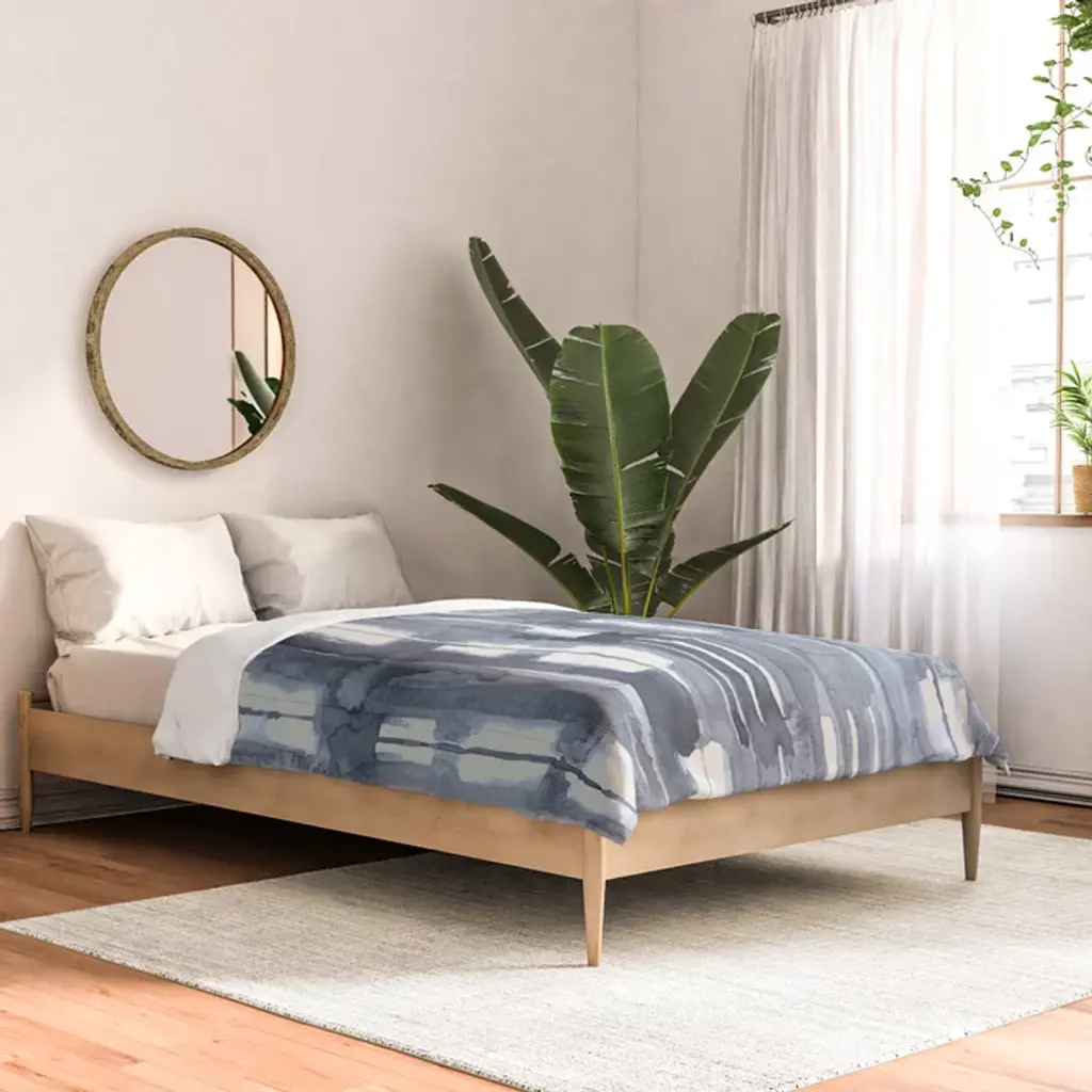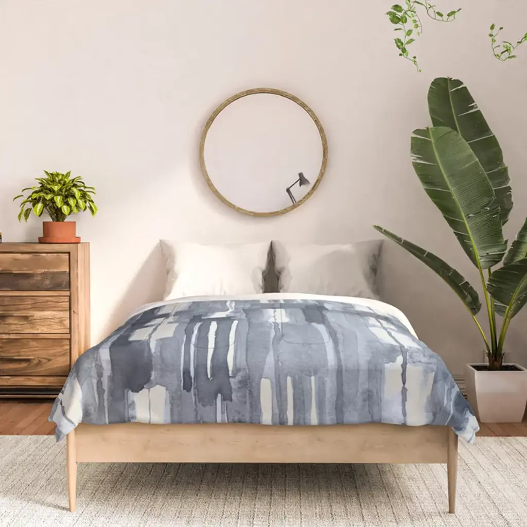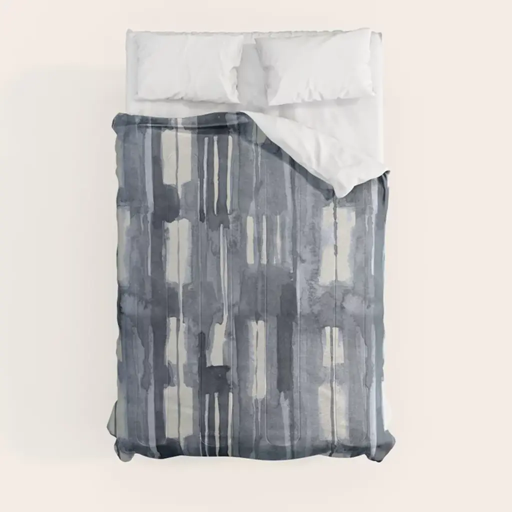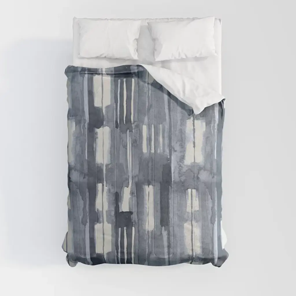 Simply Shibori Lines In Indigo Blue On Lunar Gray Comforter