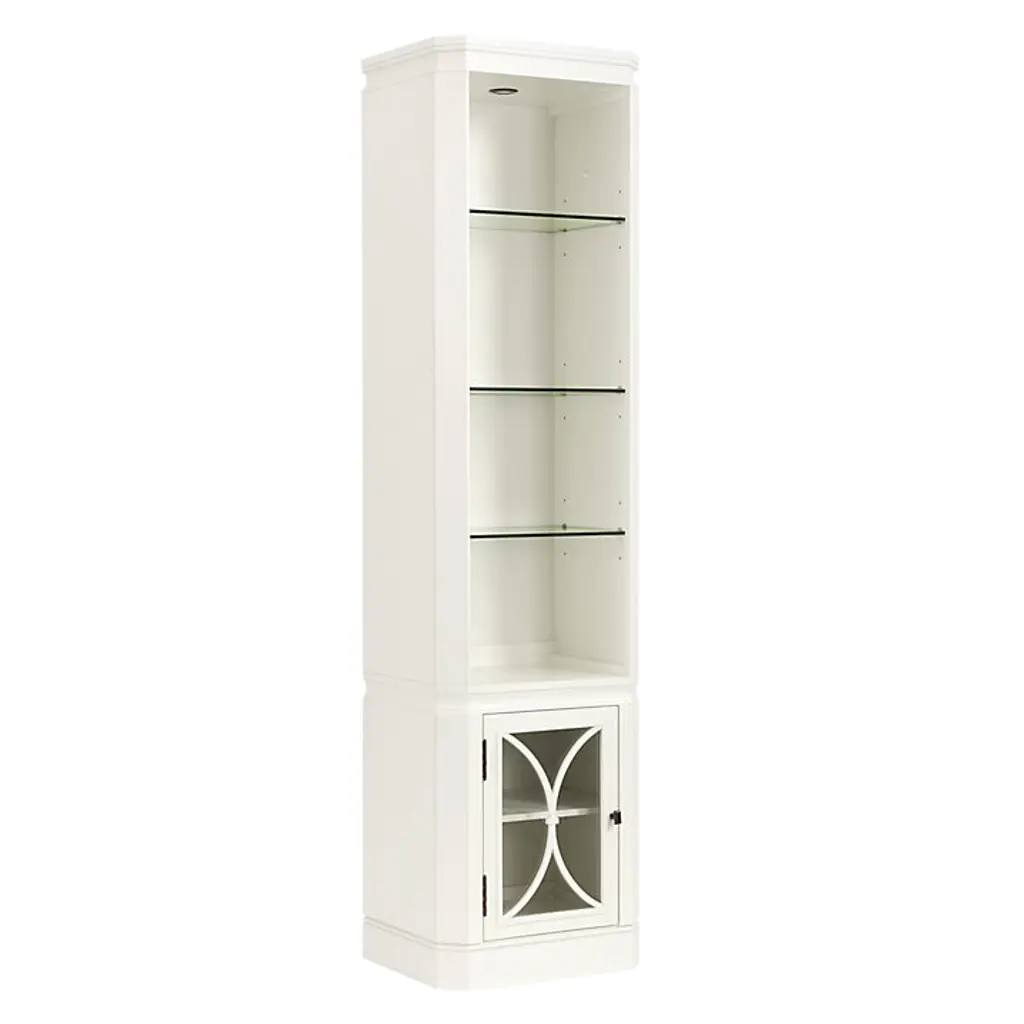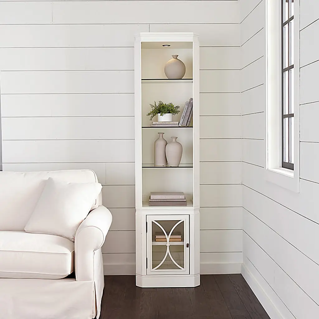 The Sinclaire Tower combines with our Sinclaire Media Console and Hutch or stands alone. Upper cabinet has three adjustable glass shelves and touch light that adjusts to three light levels. Lower cabinet has one adjustable shelf and reversible swing door to suit your space. Sinclaire Tower features:Learn How To Level This Item