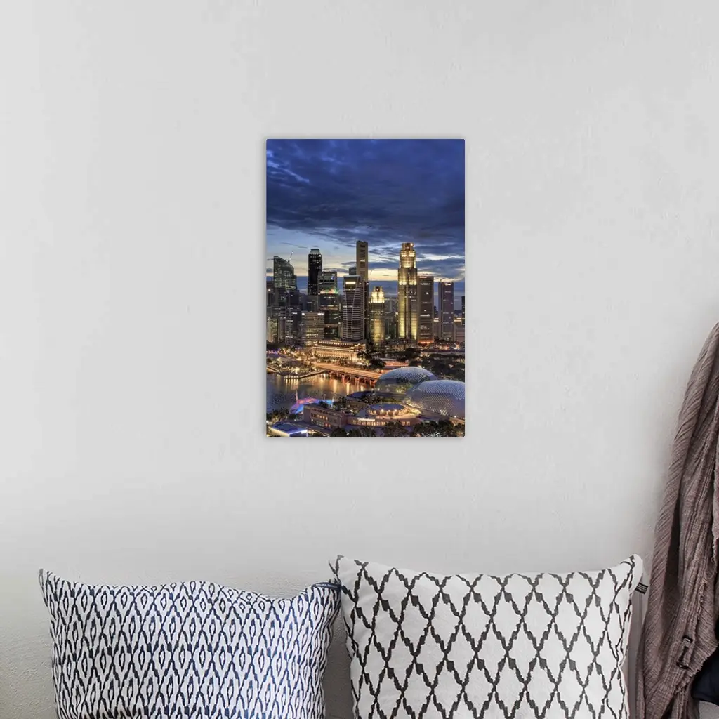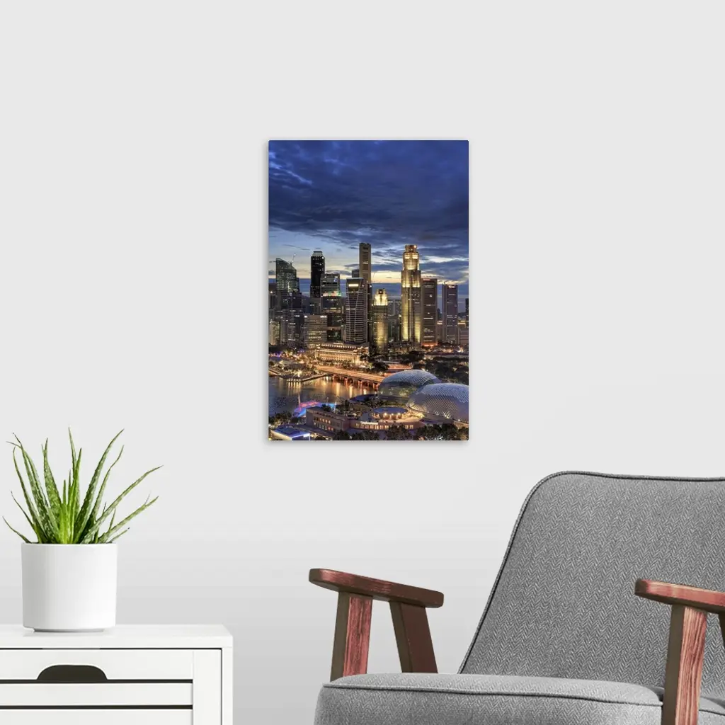 Singapore, Aerial View Of Singapore Skyline And Esplanade Theathre