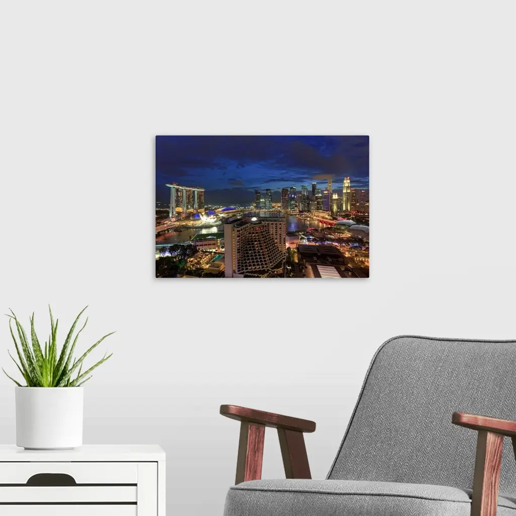 Singapore, Aerial View Of Singapore Skyline And Esplanade Theathre