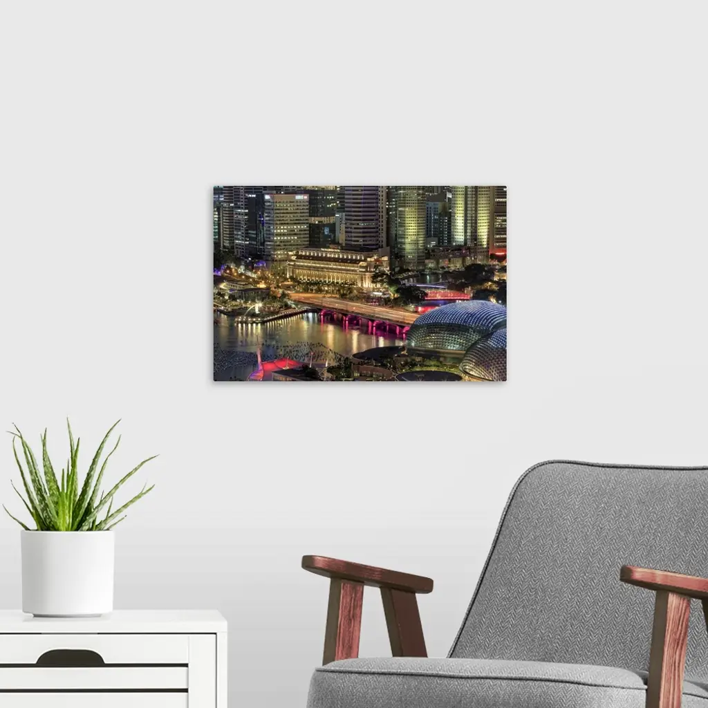Singapore, Aerial View Of Singapore Skyline And Esplanade Theathre
