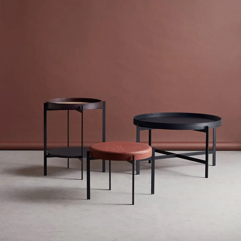 Leather is handmade by skilled craftsmen using high-quality 100 % vegetable tanned aniline leather with a general thickness of 3 mm or more. Natural imperfections on leather surface must be accepted. With time, light and use, the leather will gain depth and lustre as it ages. Due to the highly artisan process used and variation in the natural raw material, leather can wary quite significantly in colour between production batches. Frame made in powder coated steel.