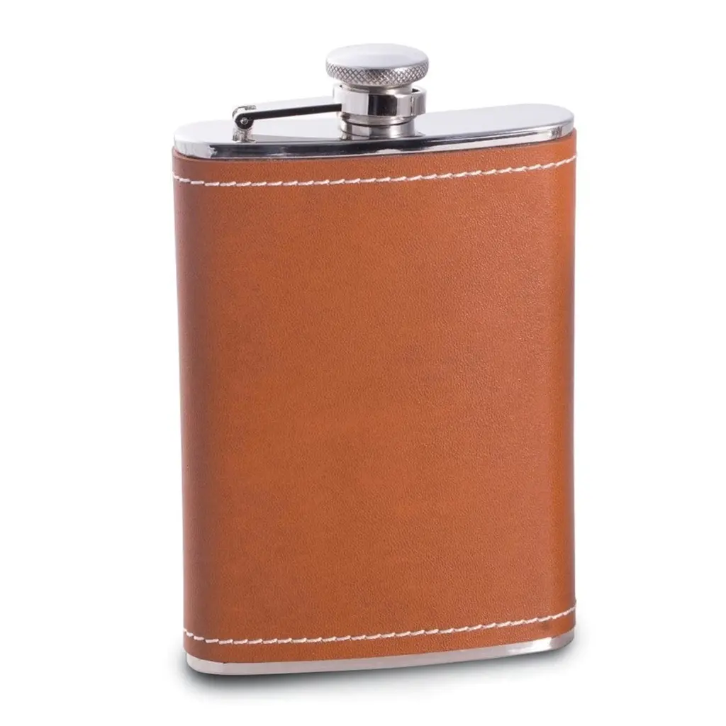 This is no ordinary flask; it's time for an upgrade. Give your liquor some serious style with this Bey-Berk classic. Sophisticated with its sleek, sturdy exterior, the stainless steel flask calls for a high-end happy hour any time. While the steel helps keep the liquid cool, the smooth leather protects your hands against the icy metal. The top screws off easily for quick access. Our brown leather flask with white contrast stitching is durable and handsome.