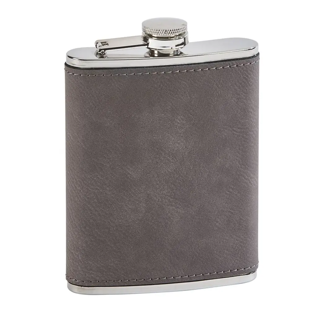 Single Initial Stainless Steel Brown Leather Flask 6 Oz. - H