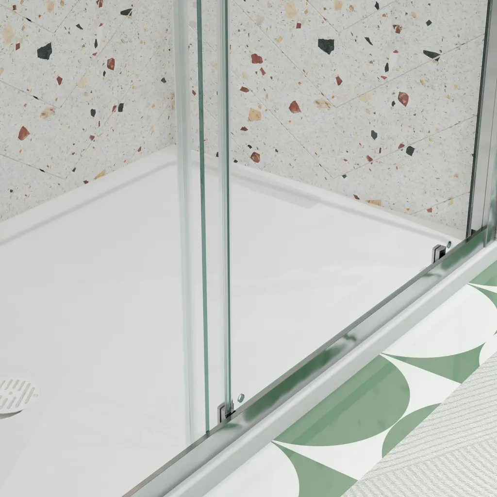 Enhance your shower experience with our premium Sliding Shower Door. Crafted with high-quality 1/4-inch tempered glass, this shower door offers both functionality and style for your bathroom. 1/4-Inch Tempered Glass: Our sliding shower door is made with high-quality 1/4-inch tempered glass, providing durability and safety for your shower space. Nano Easy Clean Glass: The glass is coated with a nano easy-clean surface, making it resistant to water stains and soap scum, resulting in effortless cleaning and maintenance. Protective Glass Film: To ensure long-lasting clarity and prevent scratches, our shower door comes with a protective glass film, keeping it looking new for years to come. Stainless Steel Handle: The shower door features a sleek and durable stainless steel handle, adding a touch of elegance and providing a comfortable grip for easy opening and closing. Left and Right Universal: Our sliding shower door is designed to be installed on either the left or right side, providing flexibility and convenience for any bathroom layout. Magnetic Closure: The shower door is equipped with a magnetic closure system, ensuring a secure and watertight seal, preventing leaks and minimizing water splashing outside the shower area. Leak-Proof Design: With its specially designed seals and precise engineering, our shower door offers a leak-proof design, keeping your bathroom floor dry and safe.