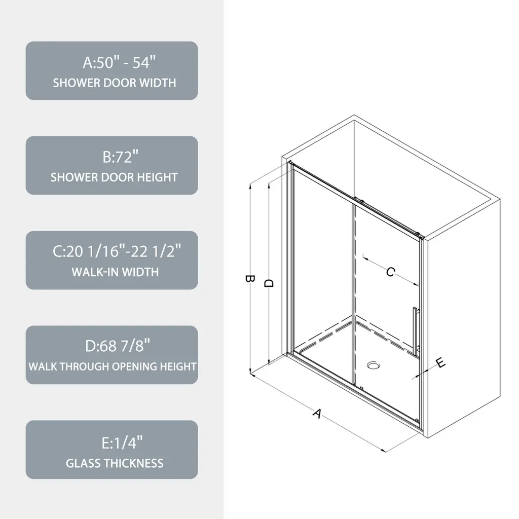 Single Sliding Shower Door With Magnetic Closure - 50"-54"w X 72"h - Chrome