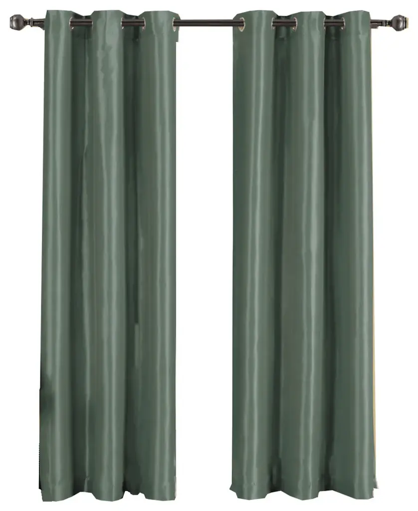 The Soho Grommet Thermal insulated Blackout Window Curtain Panel simplify the casual and contemporary styling of Home decor. The highlight of this drapery is the Triple-Pass foam back layer or Thermal Backing & Silver metal grommets sewn at the top of the panel. Designed for a look of elegance, the grommets are spaced in such a way that the drapery forms neat pleated gatherings when left partially open. 1.5 Inch Internal Grommet Diameter.100% Polyester machine washable. Sold as single Panel Thermal Insulated Backing Blocks Over 99% of light than ordinary curtains Triple-Pass Thermal coating back layer Saves on home heating and cooling costs42 x 84" each.