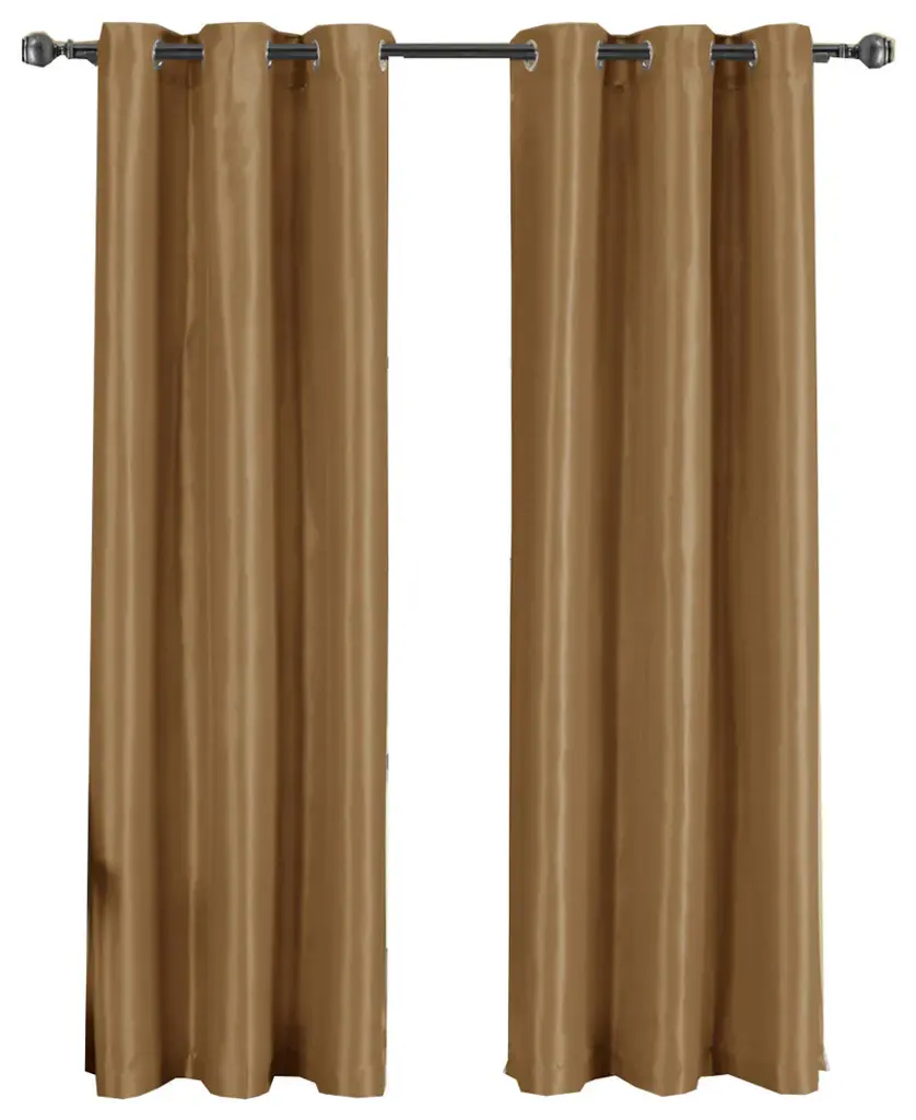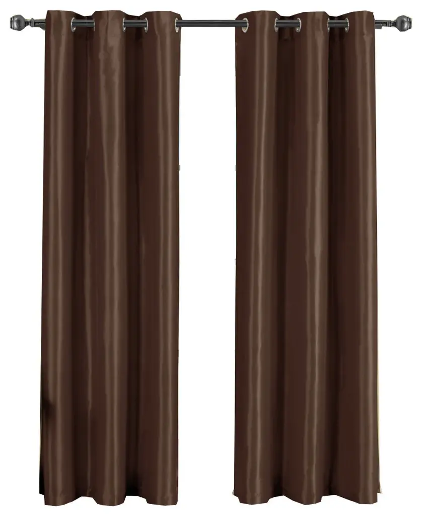 The Soho Grommet Thermal insulated Blackout Window Curtain Panel simplify the casual and contemporary styling of Home decor. The highlight of this drapery is the Triple-Pass foam back layer or Thermal Backing & Silver metal grommets sewn at the top of the panel. Designed for a look of elegance, the grommets are spaced in such a way that the drapery forms neat pleated gatherings when left partially open. 1.5 Inch Internal Grommet Diameter.100% Polyester machine washable. Sold as single Panel Thermal Insulated Backing Blocks Over 99% of light than ordinary curtains Triple-Pass Thermal coating back layer Saves on home heating and cooling costs42 x 96" each.