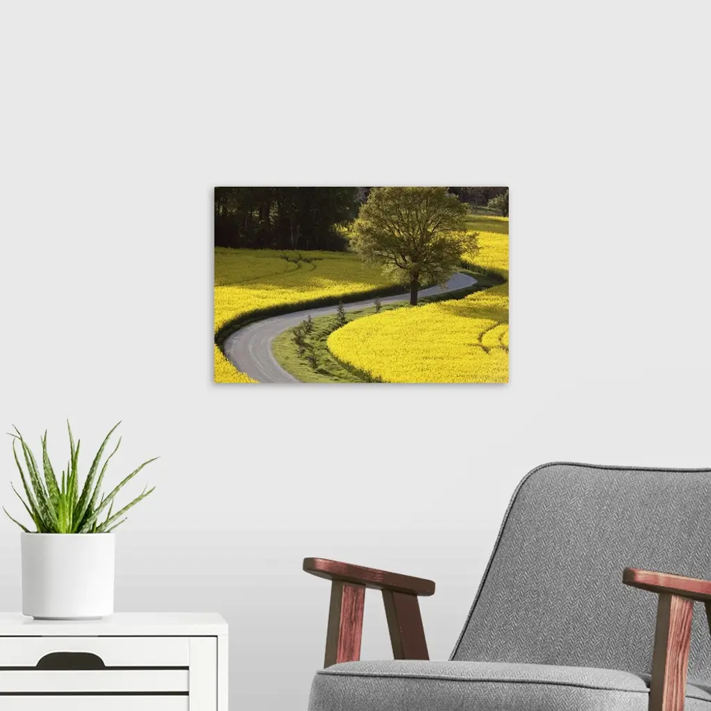 Single tree along a road wall art for home and office decor. Discover canvas art prints, photos, mural, big canvas art and framed wall art in GreatBigCanvas.com's varied collections.