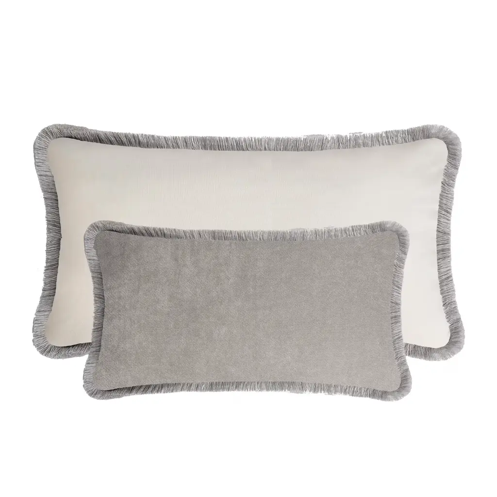 Single Velvet Bed Cushion With Fringes White And Grey