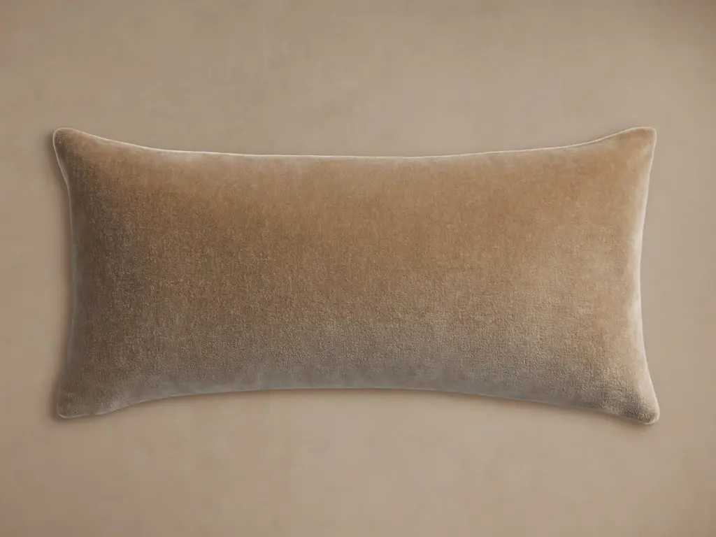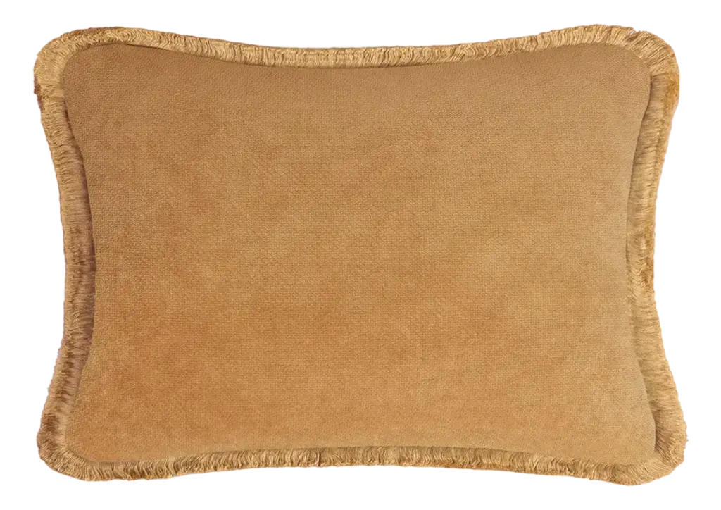 This exquisite rectangle cushion will suit any decor with its neutral tones and refined allure. Padded with polyester fiber, the velvet removable cover boasts an elegant camel color accented with a tone on tone border of the trimming, resulting in an undoubtedly versatile design. Fabric 100% PL Velvet, Padding 100% PL (Washing Machine 40°).