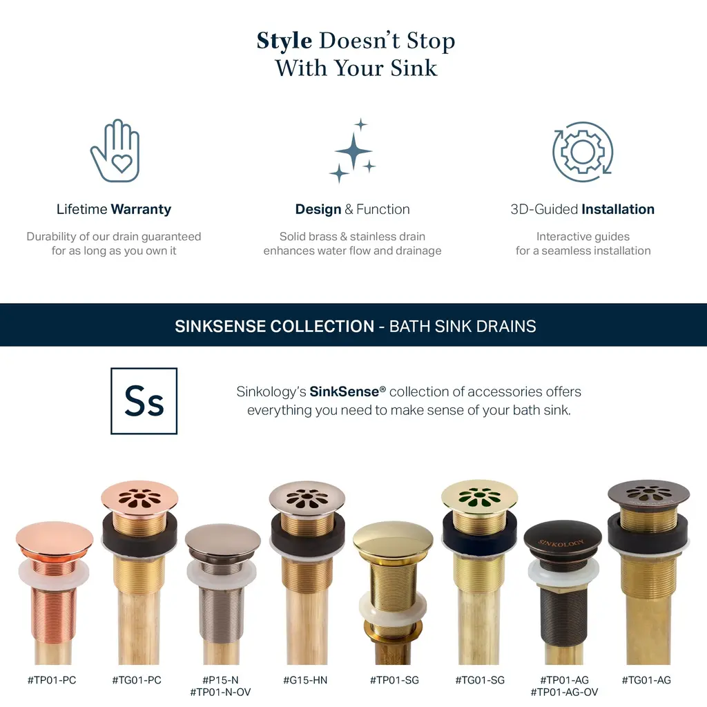 Finding the right drain size and style to match your sink can be a challenge. The SinkSense grid drain makes pairing the right sink simple - and is easy to install. Designed to fit our copper sinks and match beautifully, this solid brass drain enhances water flow and drainage. Our lifetime warranty guarantees the durability of this drain for as long as you own it. Recommended Products: