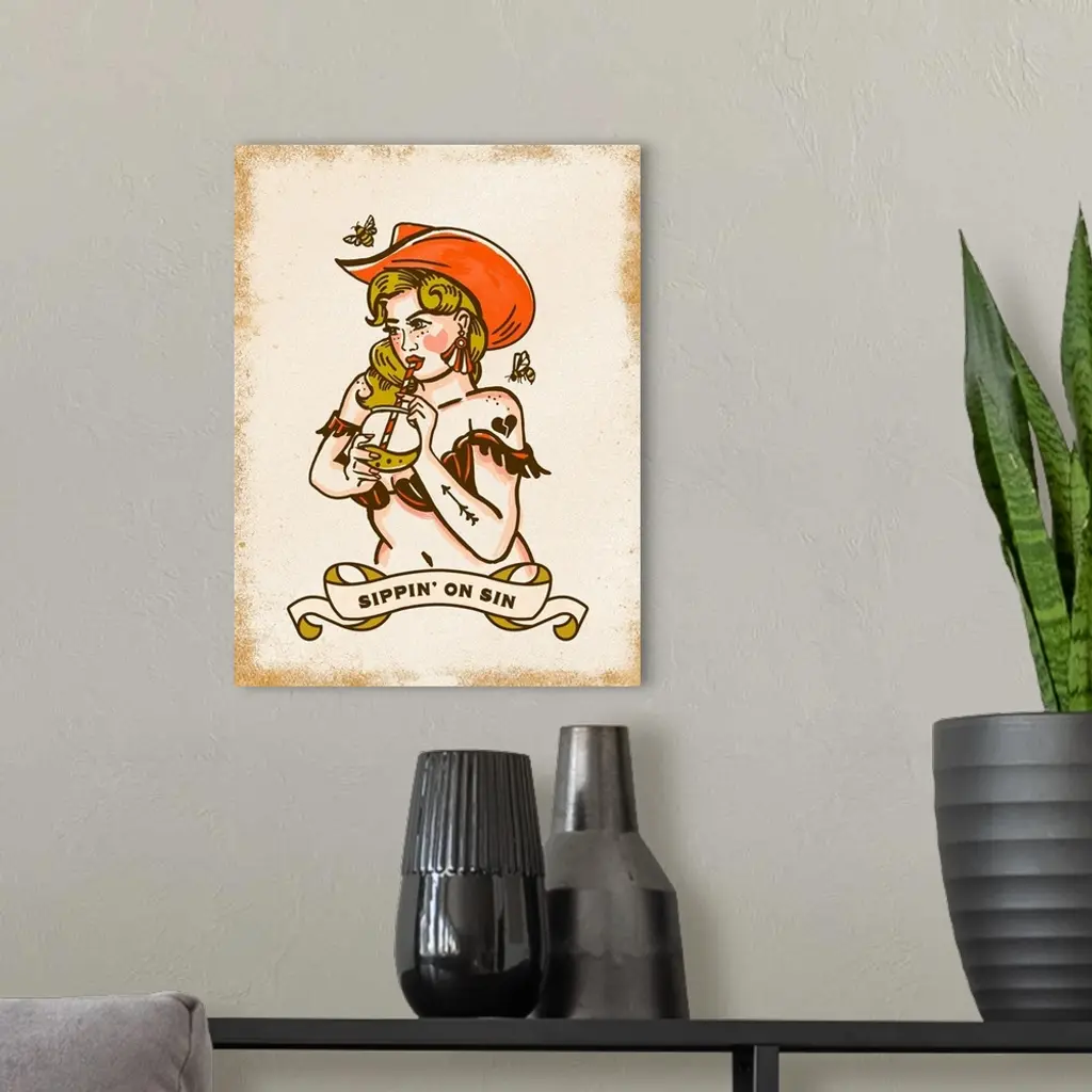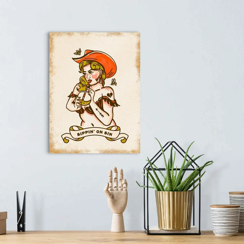 Sippin On Sin wall art for home and office decor. Discover canvas art prints, photos, mural, big canvas art and framed wall art in GreatBigCanvas.com's varied collections.