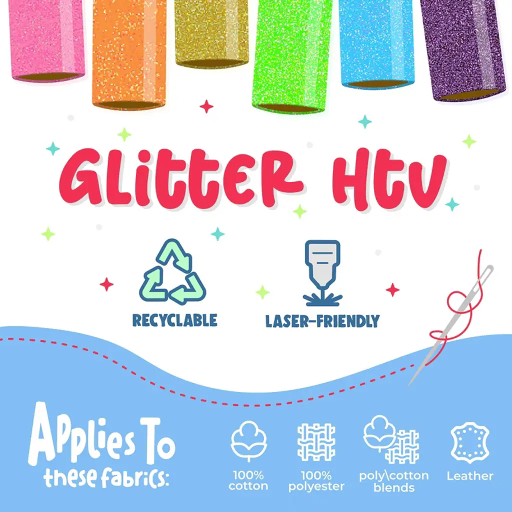 SISER Glitter HTV Heat Transfer Vinyl, 36", Black | Take your designs to the next level by "blinging-out!" using SISER GLITTER HTV! Glitter provides an eye-catching sparkle and textured feel without shedding any glitter flakes. Available in a wide spectrum of vibrant colors, there really is a Glitter for everyone! SISER Glitter HTV is also CPSIA certified, so it's safe for children's clothing! Glitter can truly create a wow factor that will be sure to capture attention anywhere it is applied to!