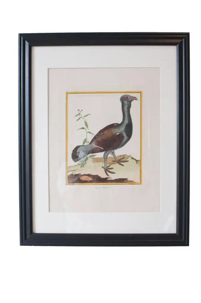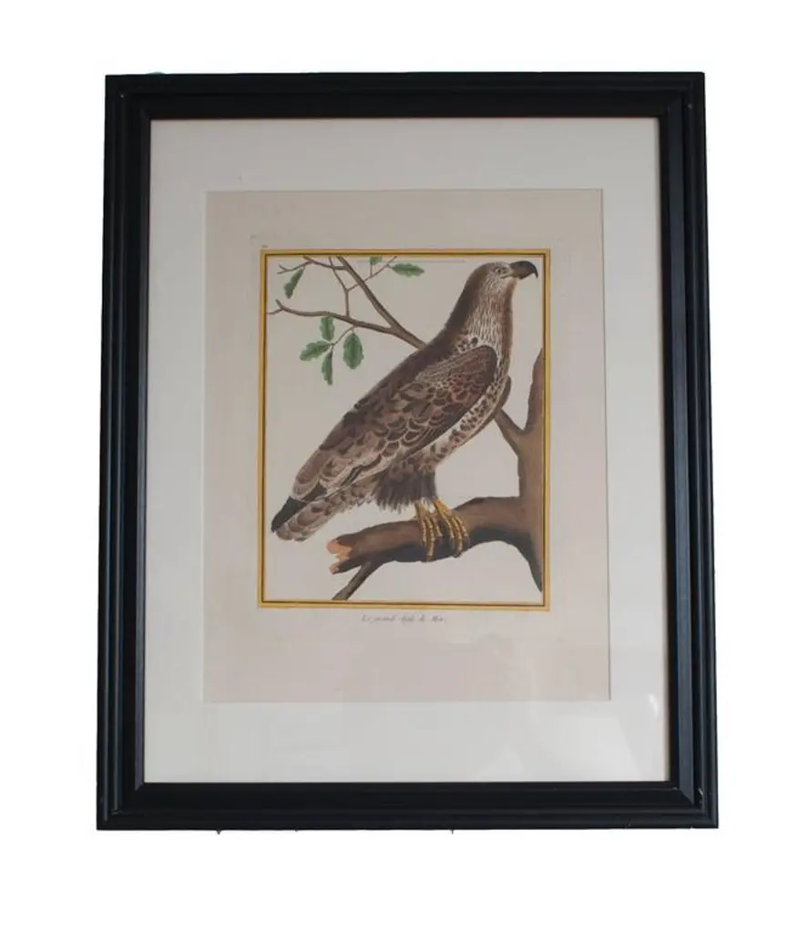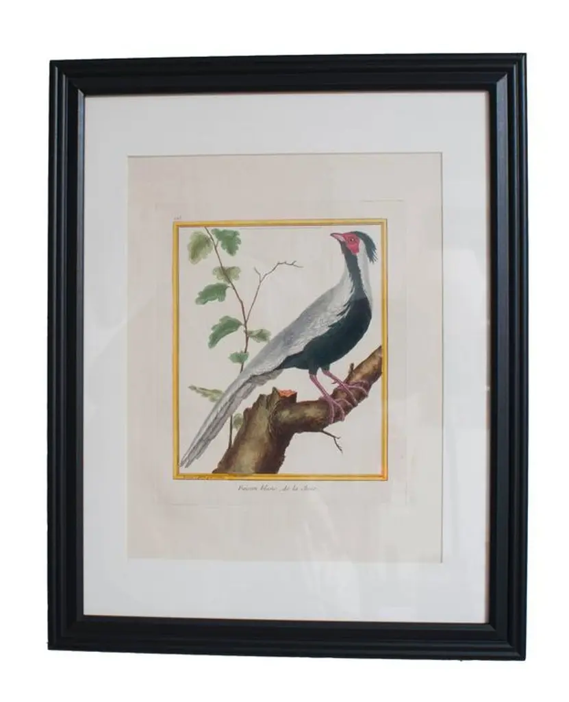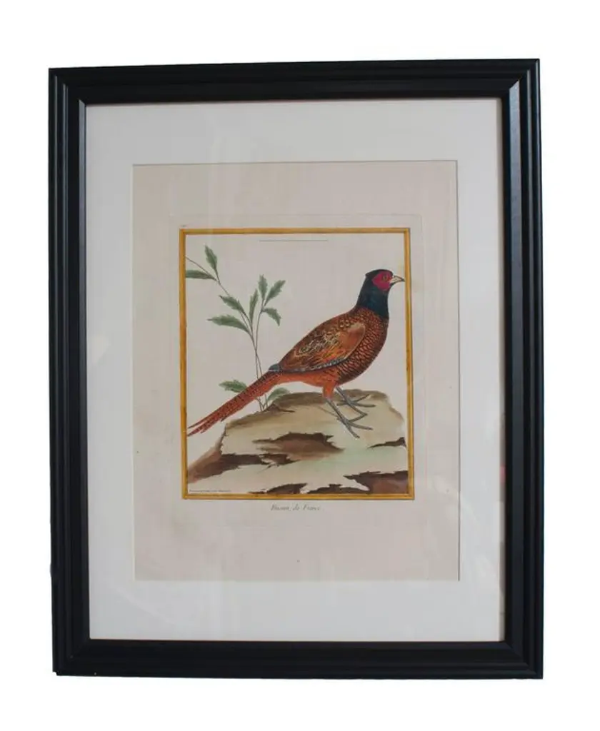 Ten hand colored engravings of birds in new frames and matting sold individually. François Nicolas Martinet. Martinet engraved illustrations of birds for books by some of the most influential ornithologists in 18th-century France