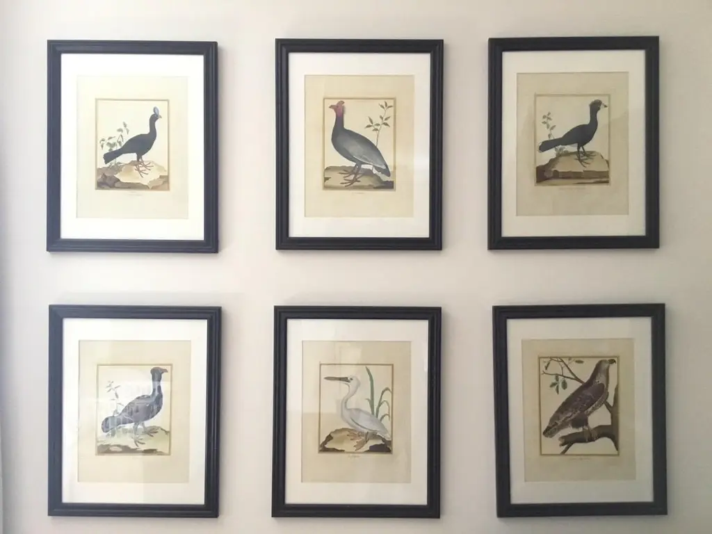 Six Hand Colored Engravings Of Birds In New Frames & Matting. By Martinet.
