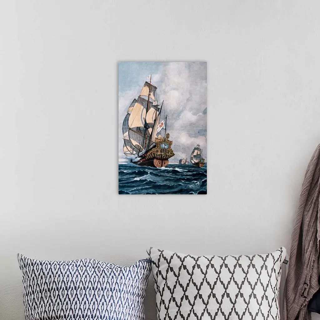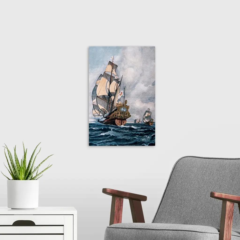 Sixteenth Century Galleon. 19-20th Century Color Engraving