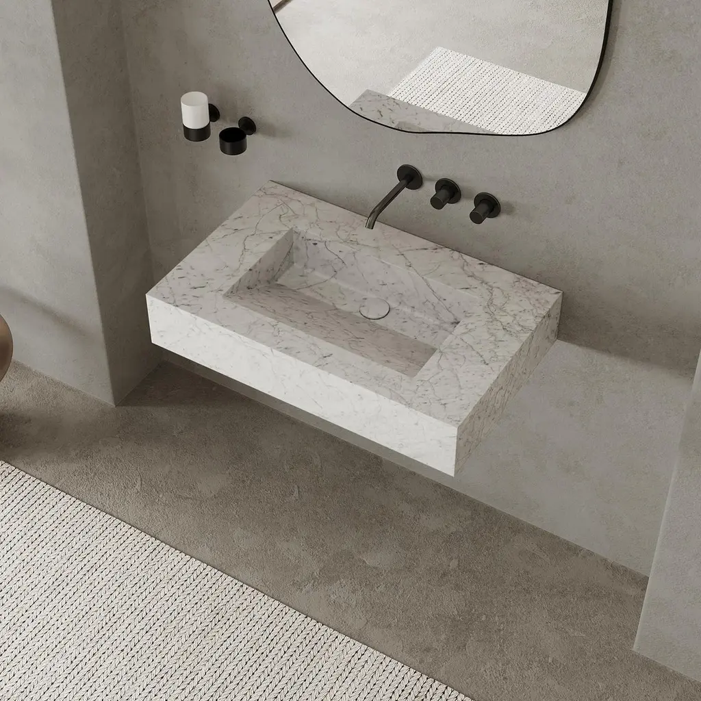 Elevate your bathroom space with our rectangular Skadi Marble Basin, a perfect fusion of minimalist design and natural elegance. Its smooth, honed surface highlights the unique veining and texture of the marble, ideal for modern bathrooms seeking a touch of understated luxury. Available in a variety of marble options, allowing you to select the perfect colour and texture to match your unique design vision. The water supply kit, drain assembly, and faucets are not included however our installation manual is included to assist!As marble is a natural material, variations in background color, veining distribution, and patterns are to be expected, making each piece uniquely beautiful.Please note: Lifestyle images are for illustrative purposes only and may feature a different size of the product. Actual product dimensions are specified on the product listing. Non-lifestyle images are of the actual product and will give you an accurate indication of size.Dimensions: 1205015 cm