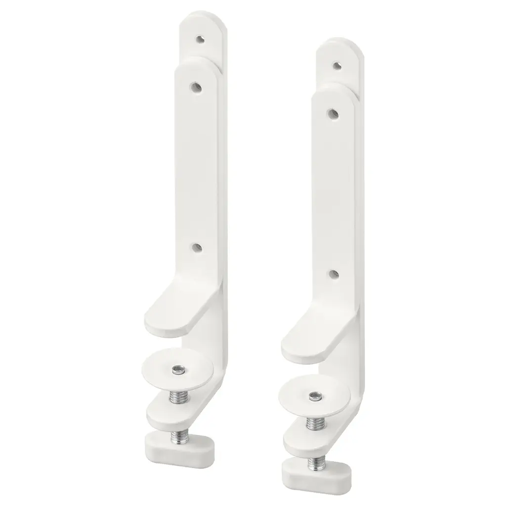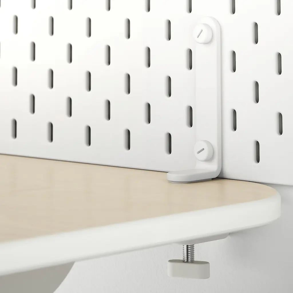 SKÅDIS Connector - white. These connectors can be used to attach SKÅDIS pegboard to a desk or shelf ‒ to avoid drilling holes in the wall. Connect to SKÅDIS pegboard and add SKÅDIS accessories to create a well organized solution by your work desk.