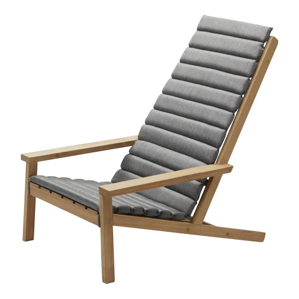 A cushion for the Between Lines Deck Chair Add an extra dimension of comfort to your Between Lines Deck Chair with this custom-made cushion that easily ties to the seat. The 17 folds in the cushions design are inspired by the construction of a wooden suspension bridge. The upholstery fabrics are Oeko-Tex certified and extremely colour and lightfast as well as water and dirt-repellent and even mildew-resistant. With an open-cell foam filling, the cushion dries exceptionally quickly, even after a heavy downpour. Skagerak is a family-owned company with historical roots in Scandinavian geography and proud furniture traditions. Our passion for wood and our focus on quality have remained intact, as we have developed into a modern design brand with an extensive selection of contemporary products in a wide range of materials, created by established designers as well as up-and-coming talents. We stand for responsible production, transparent working relations and good working conditions. We support and adhere to the United Nations' ten principles for CSR and only use legally sourced timber. Our products fall into three categories: Interior, Outdoor and Accessories, and we export to forty countries. We are proud of that achievement and attribute it to our efforts to create functional products for real life.