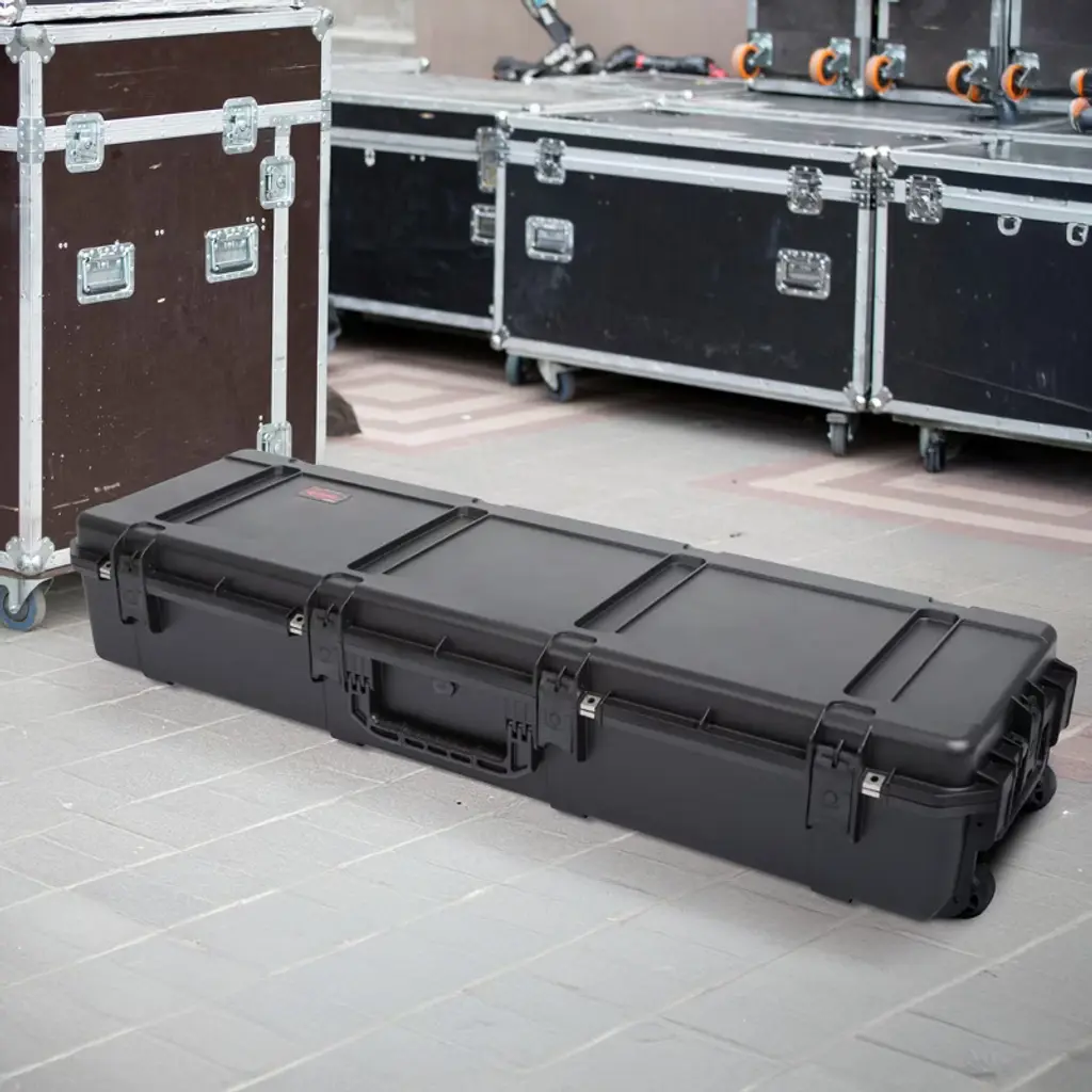Introducing the SKB iSeries 5616‑9 Utility Case, a heavy-duty, waterproof storage solution built for professionals who need uncompromising protection for long or oversized gear. Whether you're carrying camera tripods, lighting stands, keyboards, or production equipment, this rugged case is designed to keep your tools secure in transit and on location. Constructed from ultra-tough polypropylene copolymer resin, the case withstands impacts, drops, and harsh environments. It’s fully waterproof, dust-tight, and resistant to UV, solvents, and corrosion, making it ideal for demanding conditions on set or tour. The interior features layered foam to fit your gear snugly, adding another layer of shock absorption during travel. The SKB iSeries 5616‑9 transport case is engineered for mobility with built-in wheels and a cushioned pull handle for effortless rolling, even when fully loaded. Trigger-release latches ensure secure closure, while the automatic ambient pressure equalization valve maintains seal integrity during altitude or temperature changes. Used by musicians, audio/visual technicians, and mobile DJs, the SKB iSeries 5616‑9 is more than a case, it's a high-performance gear vault designed for real-world use. From studio racks to live rigs, it delivers unmatched protection wherever your music or media takes you.