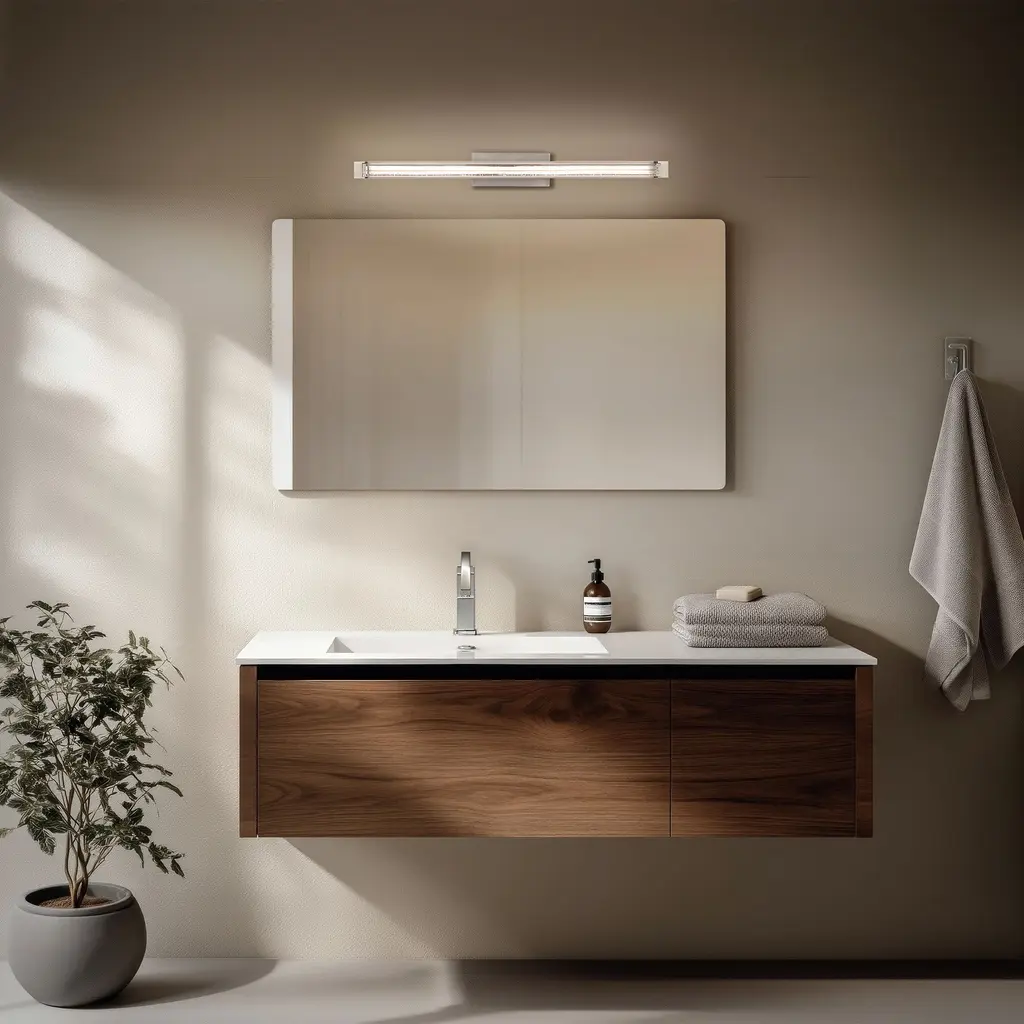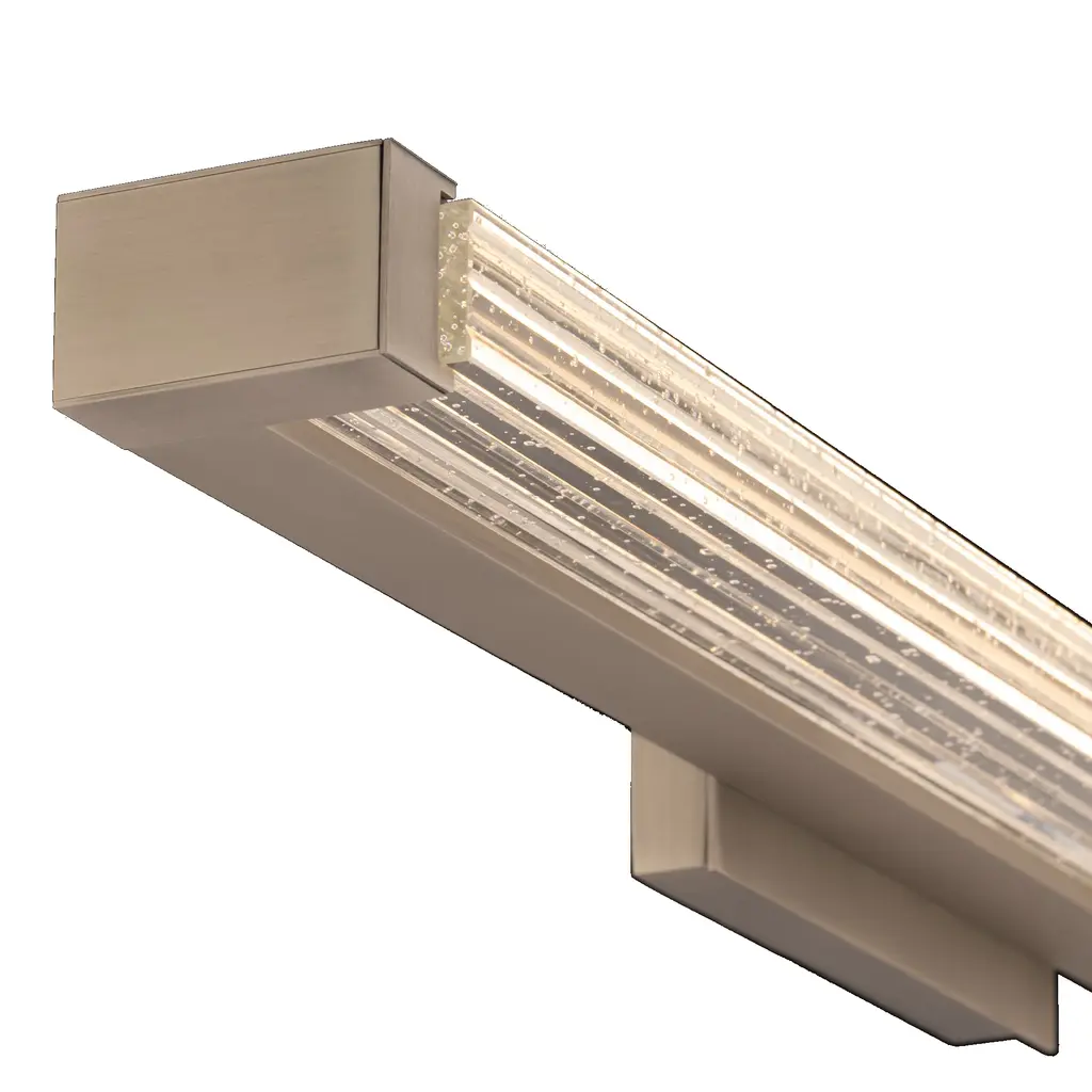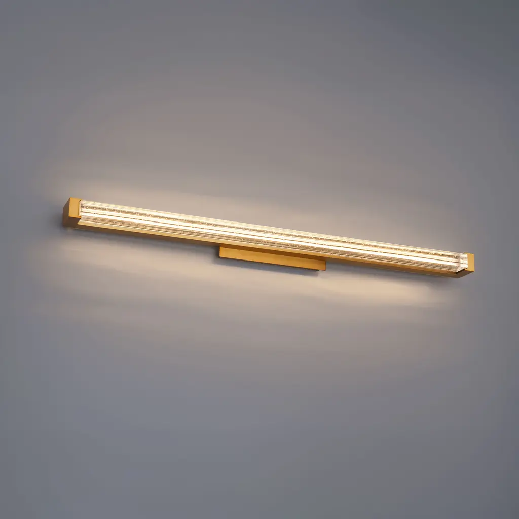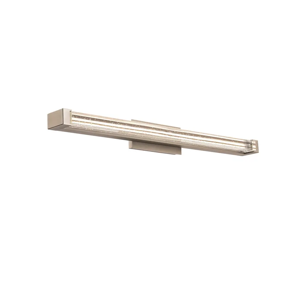 A brilliant bar of light and texture, the Skein LED Bath & Vanity Wall Light from Modern Forms adds modern glamour to the bath. This elegant vanity light features an elongated bar of V-cut, seedy K5 crystal, designed to cast intricate and beautiful striations of warm, ambient light. The rich texture of the crystal diffuser creates a sparkling, jewel-like effect. Designed for ultimate flexibility, it can be mounted either vertically or horizontally to perfectly suit your space. Highlights: