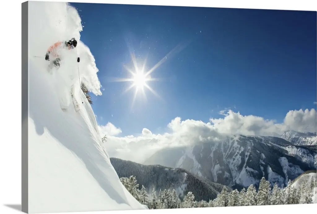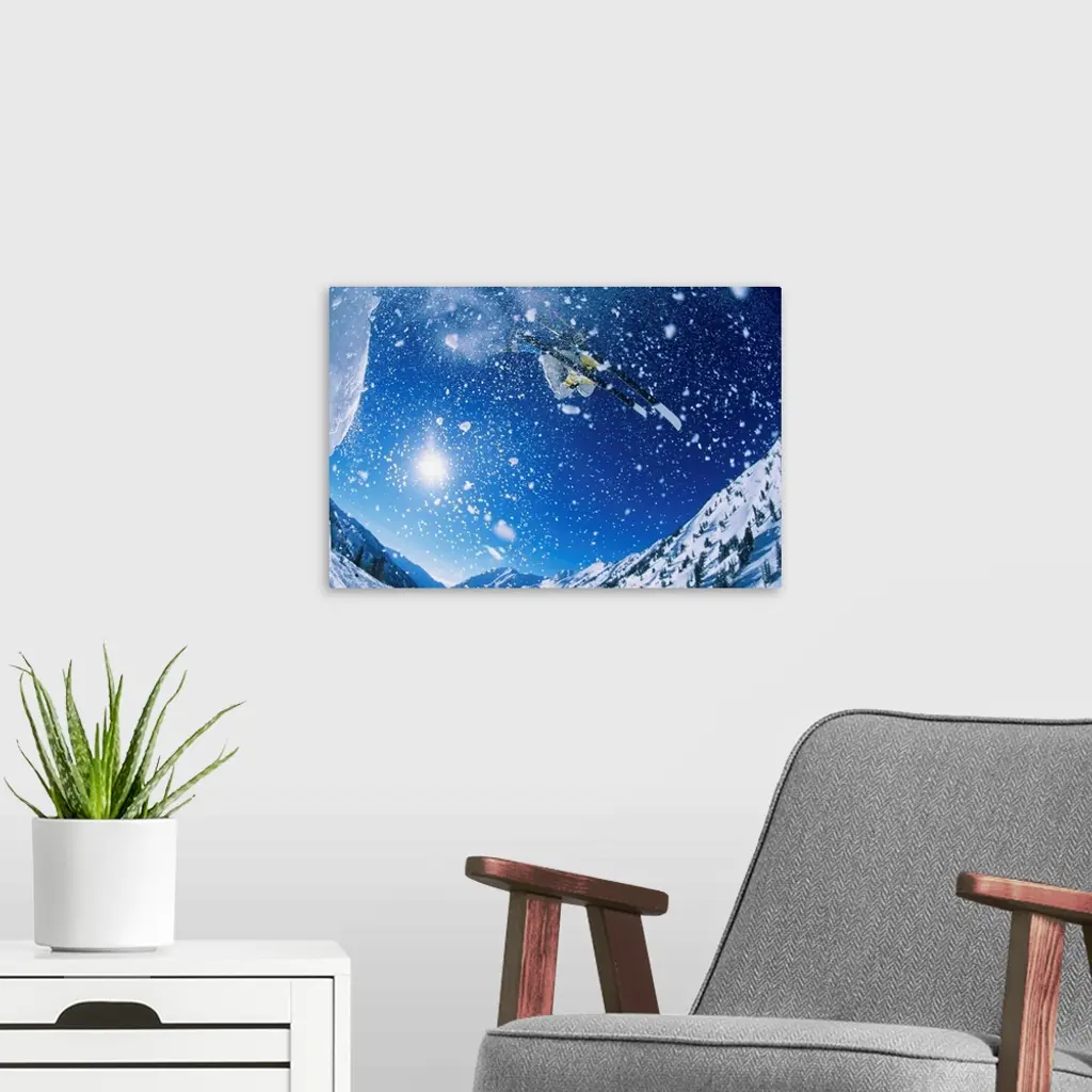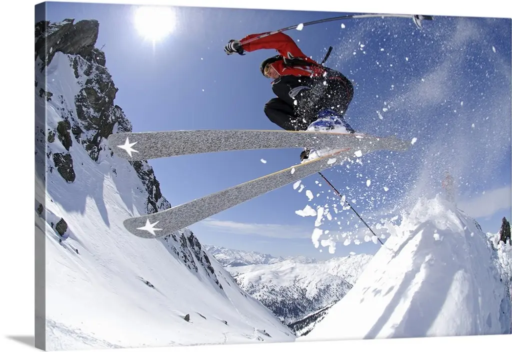 Skier Jumping From Mountain Ledge wall art for home and office decor. Discover canvas art prints, photos, mural, big canvas art and framed wall art in GreatBigCanvas.com's varied collections.