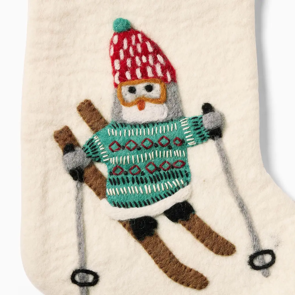 The adorable skiing penguin. Brings seasonal charm to a mantel or stair rail. Roomy enough to stash plenty of presents. Personalize this stocking to make it a family heirloom.