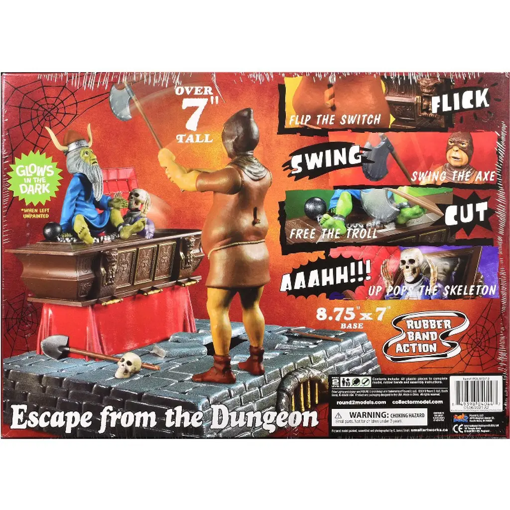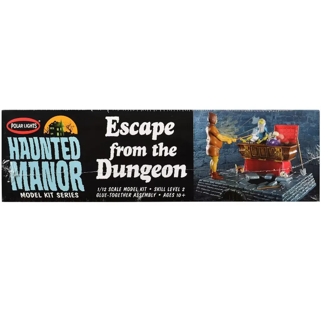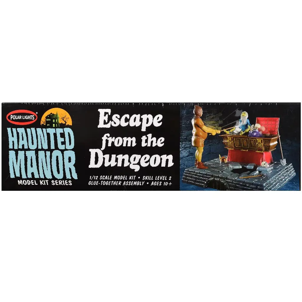 Brand new plastic model kit of Haunted Manor "Escape from the Dungeon" Diorama Set (Skill 2) 1/12 plastic model kit by Polar Lights. Brand new box. Rubber band action. Glue-together assembly. Vintage style packaging. Officially licensed product. Contains 43 detailed parts. Base measures at 8.75 by 7 inches. Glows in the dark when left unpainted. Assembled model stands at 7 inches tall. Paint and cement required (not included). Manufacturer's original unopened packaging. Parts molded in GLOW IN THE DARK PLASTIC, unless otherwise indicated.