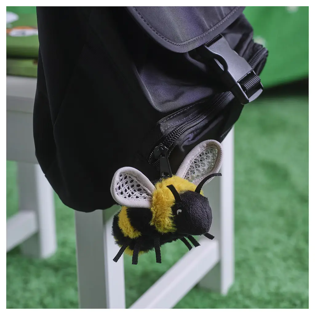 SKOGSDUVA Soft toy - mini-bumblebee/black yellow 3 ¼ ". The small bee is easy to attach to the zipper of the backpack or bag since it has a little loop. Made of recycled polyester that is soft and gentle on sensitive skin. Recommended for children 3 years and older. This product bears the CE mark.