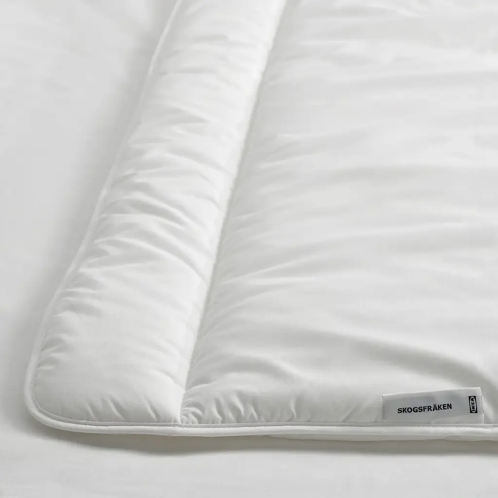 SKOGSFRÄKEN Duvet insert, extra warm King. You get a dry and comfortable sleeping environment since the recycled polyester/lyocell fabric breathes well, which helps air to circulate and moisture to evaporate. A good choice if you need extra warmth while sleeping. Thread count 227.