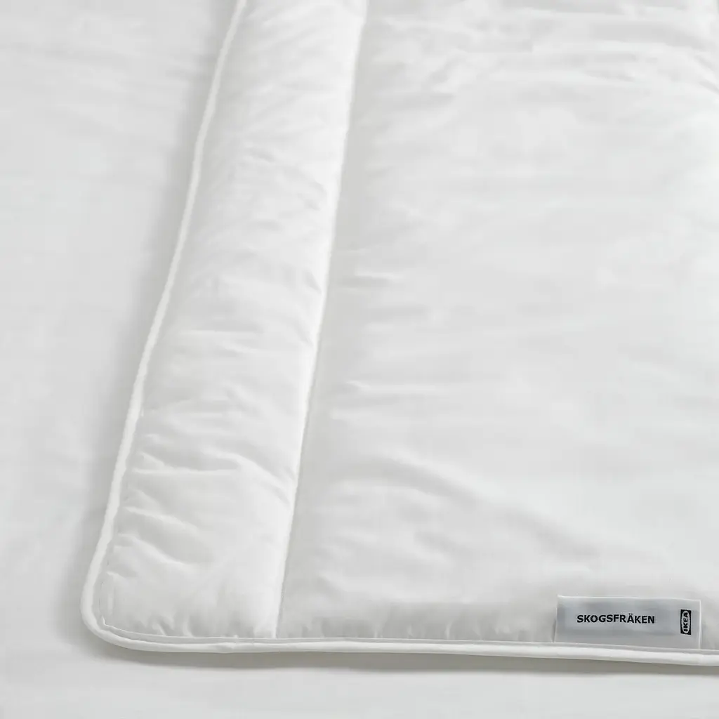 SKOGSFRÄKEN Duvet insert, warm Full/Queen. You get a dry and comfortable sleeping environment since the recycled polyester/lyocell fabric breathes well, which helps air to circulate and moisture to evaporate. A good choice if you often feel cold while sleeping. Thread count 227.