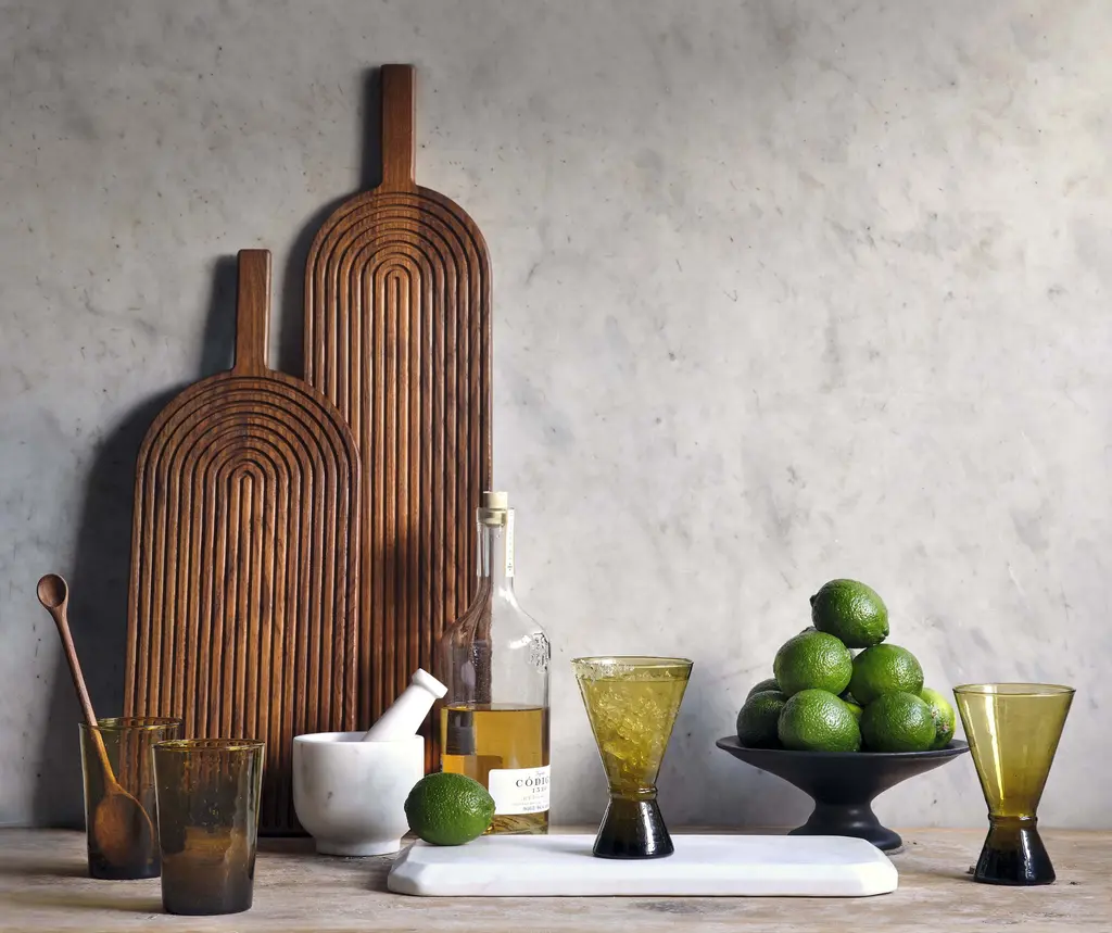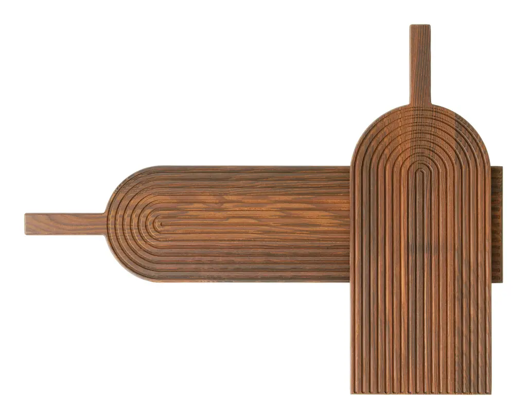 Create a snack spread your guests won’t be able to resist with the help of our Skylar Serveboard. Handcrafted in Lithuania from locally-sourced ash wood, this paddle-style serveboard is formed into a chic arched shape and carved with rows of concentric arched grooves, which add textural interest while also offering a clever way to catch juices from meats and fruits. All of this is covered with a thermo treated finish for increased durability and coated with a natural mineral oil to help prevent drying and cracking. Perfect for an arrangement of cheese, charcuterie or finger foods for grazing before the main meal, Skylar also looks great leaning on the kitchen counter when not in use for a touch of natural beauty. •ash wood •thermo treated finish•carved arched grooves•treated with natural mineral oil•handcrafted in lithuania Dimensions•long: 24.75"W x 6.25"D x .5"H•wide: 19"W x 7.25"D x .5"H •each is unique; variations in color and tone of wood should be expected CARE•rinse with warm water to remove food particles •wash with mild dish soap and a soft sponge•avoid soaking or immersing completely in water •rinse thoroughly and dry immediately with a clean towel •disinfect with a mixture of vinegar and water •do not use bleach, abrasive cleaners or strong chemicals•regularly oil with food-grade mineral oil, beeswax or specialized cutting board oil
