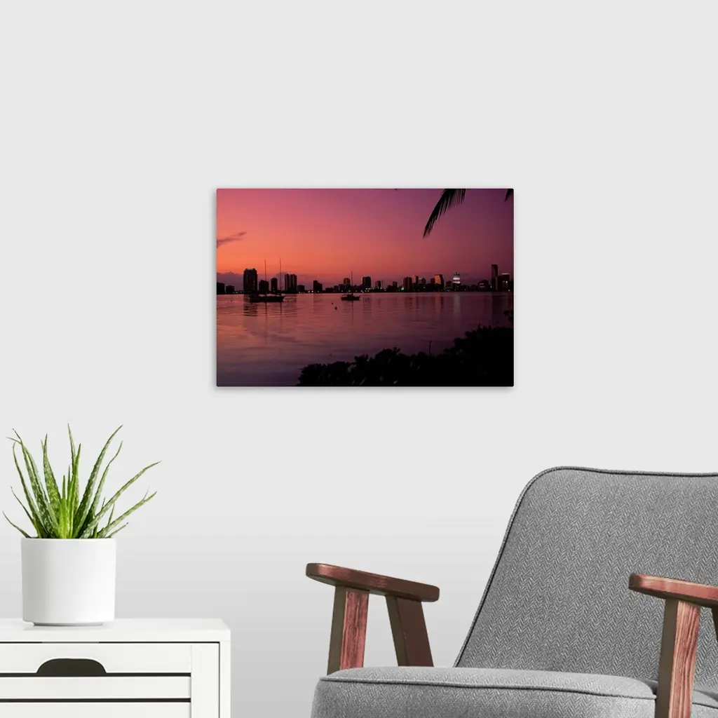 Skyline at Sunset in Miami, Florida wall art for home and office decor. Discover canvas art prints, photos, mural, big canvas art and framed wall art in GreatBigCanvas.com's varied collections.