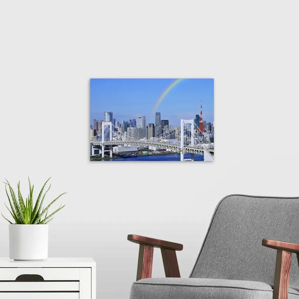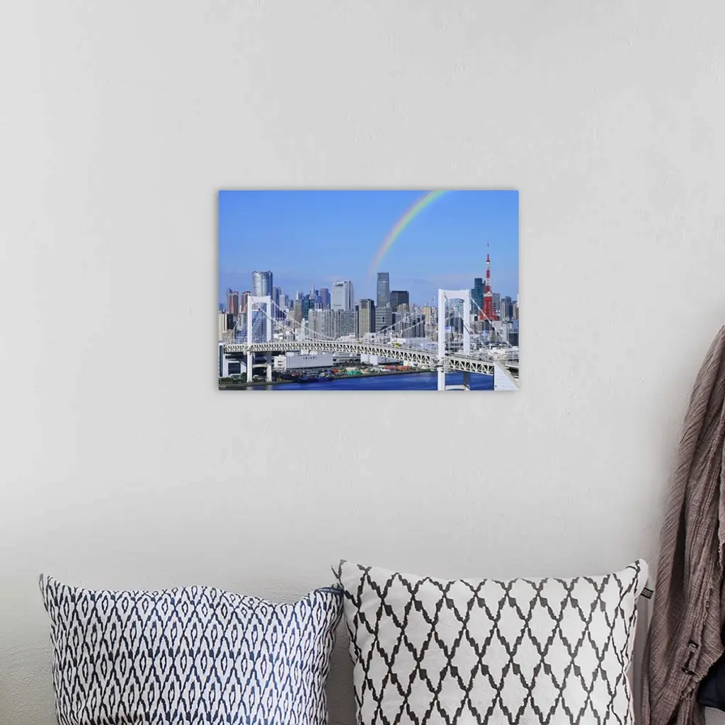 Skyline of Tokyo and Rainbow bridge, Tokyo Prefecture, Honshu, Japan wall art for home and office decor. Discover canvas art prints, photos, mural, big canvas art and framed wall art in GreatBigCanvas.com's varied collections.