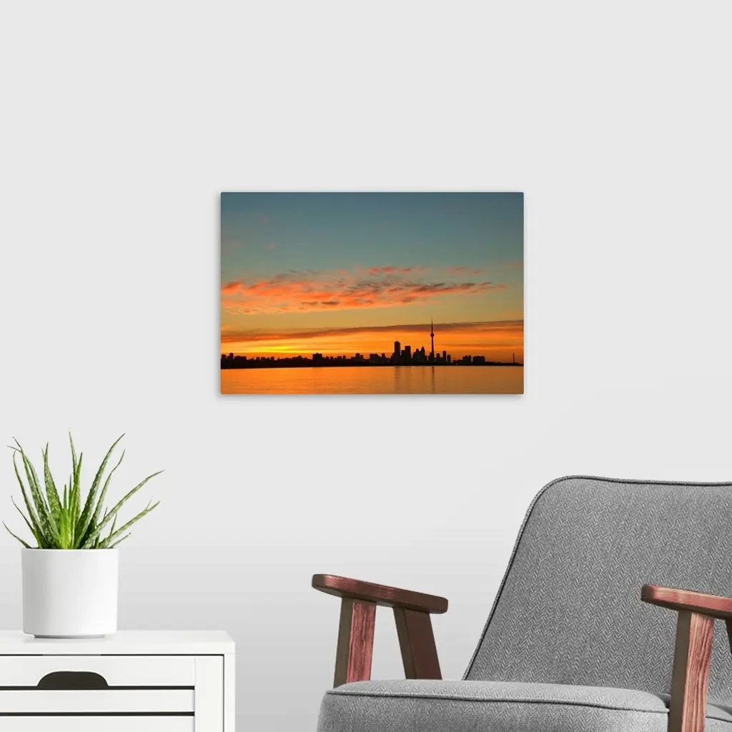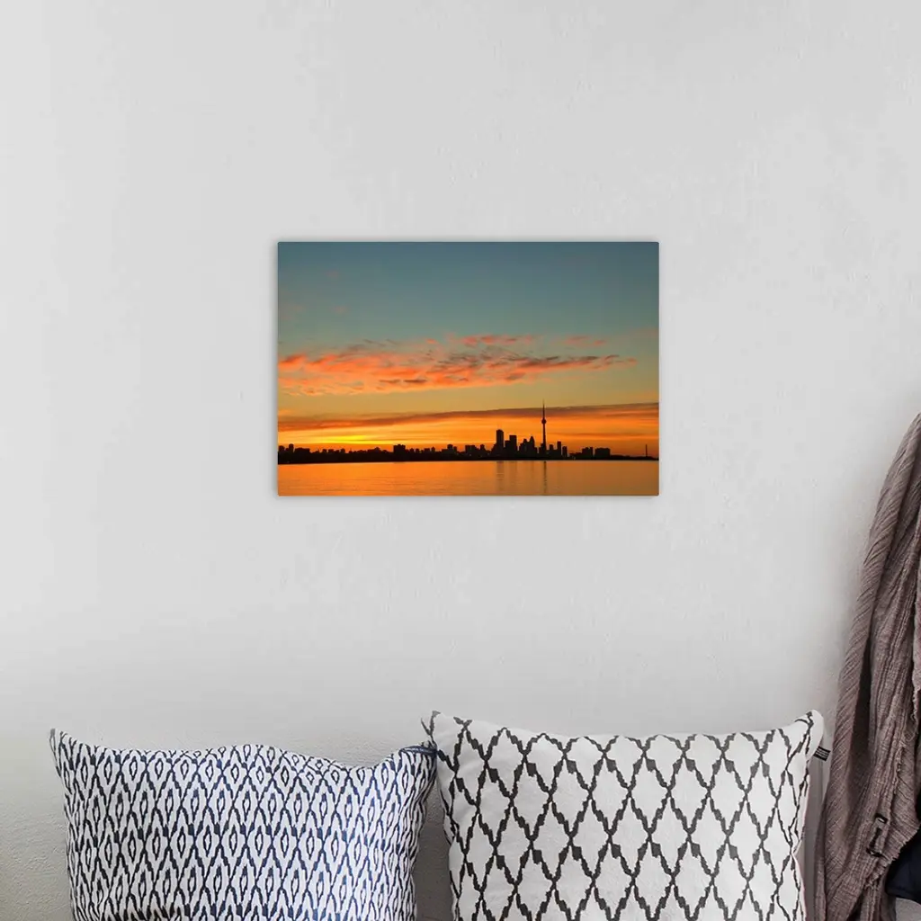 Skyline Of Toronto Against A Beautiful Sunset wall art for home and office decor. Discover canvas art prints, photos, mural, big canvas art and framed wall art in GreatBigCanvas.com's varied collections.