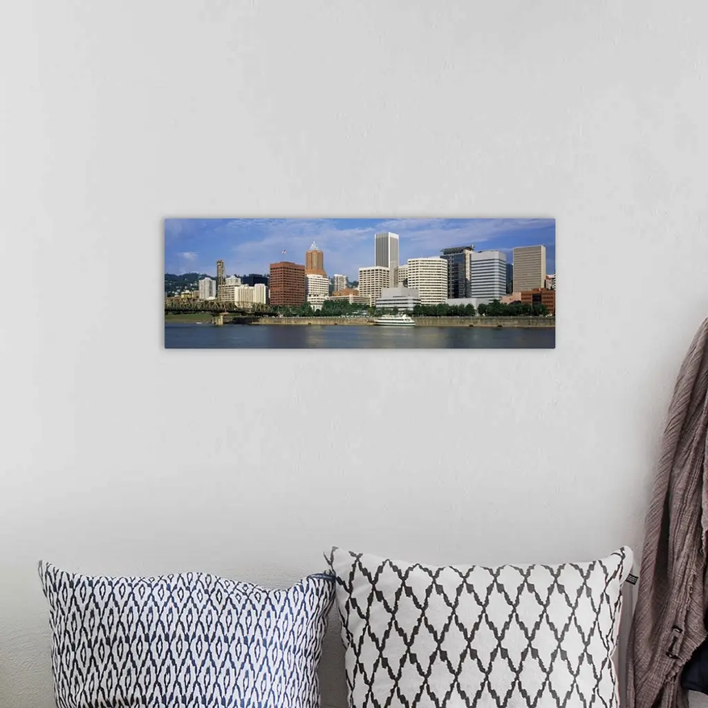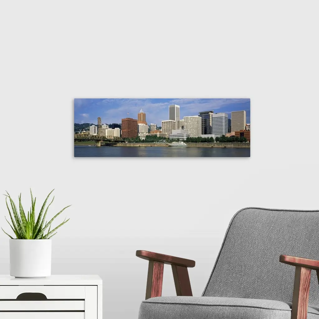 Skyscrapers at the waterfront, Portland, Multnomah County, Oregon, wall art for home and office decor. Discover canvas art prints, photos, mural, big canvas art and framed wall art in GreatBigCanvas.com's varied collections.