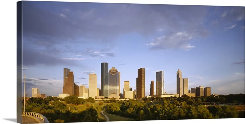 Skyscrapers in a city, Houston, Texas wall art for home and office decor. Discover canvas art prints, photos, mural, big canvas art and framed wall art in GreatBigCanvas.com's varied collections.