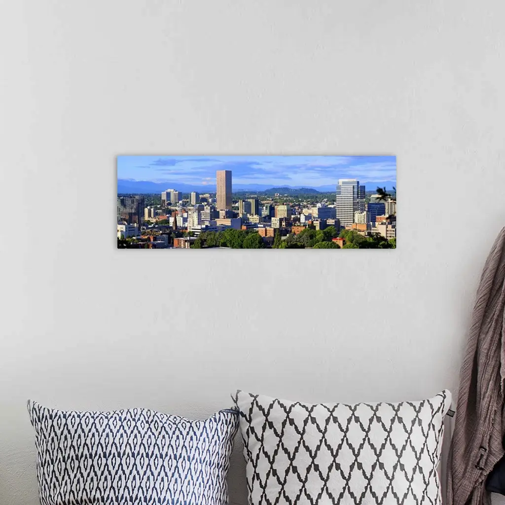 Skyscrapers in a city, Portland, Oregon wall art for home and office decor. Discover canvas art prints, photos, mural, big canvas art and framed wall art in GreatBigCanvas.com's varied collections.