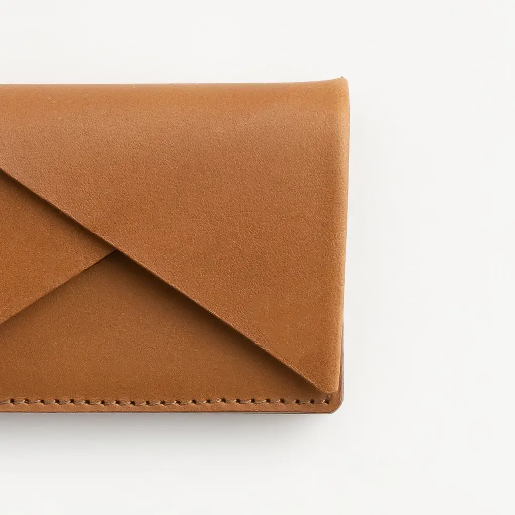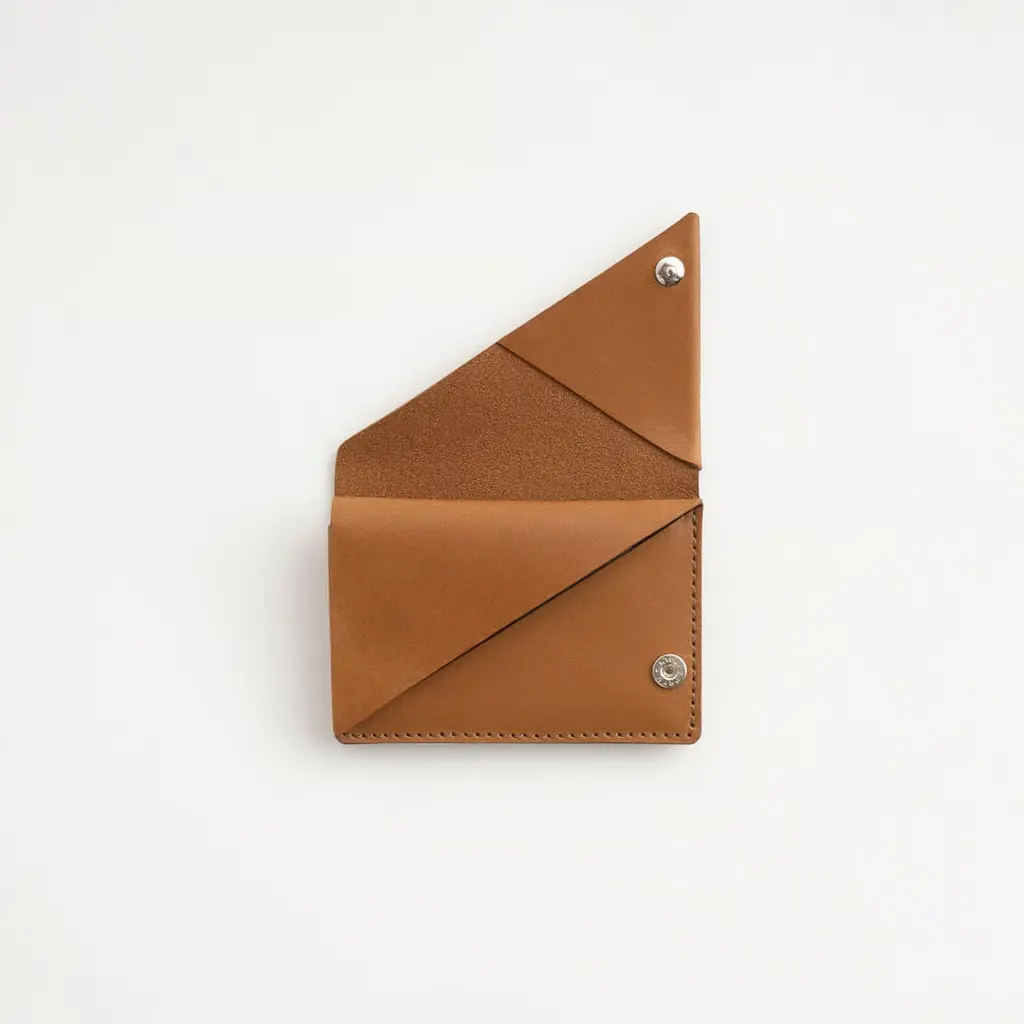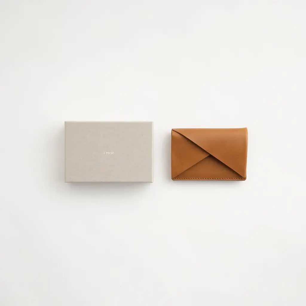 Slim, minimalist and compact, the Slant Card Case Brown from Japanese brand i ro se is the perfect choice for your cards, cash, and small items you want to keep close and secure. The elegantly simple design references the art of origami with two folding leather flaps that create two separate pockets. With each pocket able to hold up to 10 cards, this card case is ideal for everyday use. Supple and soft, the durable leather is specially tanned and infused with an oil treatment to ensure many years of use. Indeed, the Slant Card Case Brown will develop more character over time, as you will leave your mark on the natural material every time you will open and close the pockets. Like a vintage leather case, the Slant Card Case Brown will only get more gorgeous over the years. Also available in a black version, both handmade in Japan.