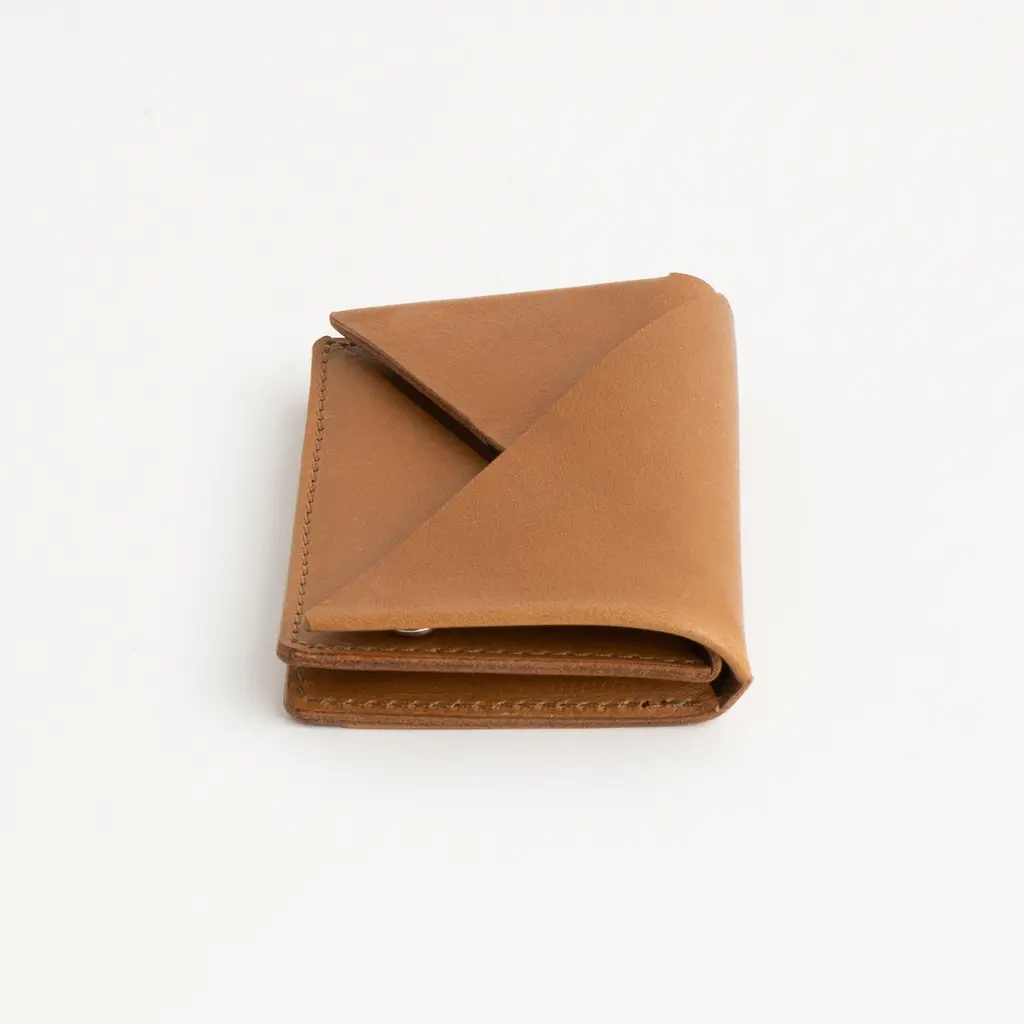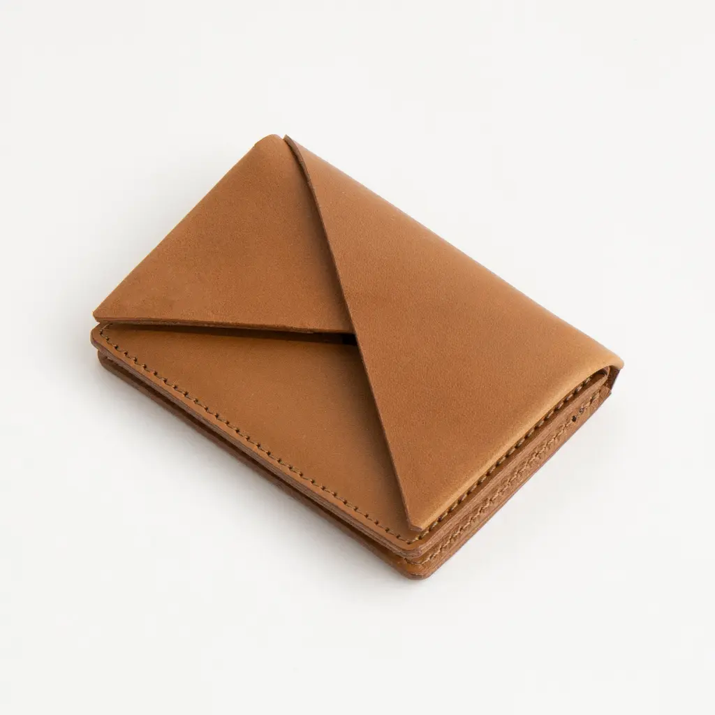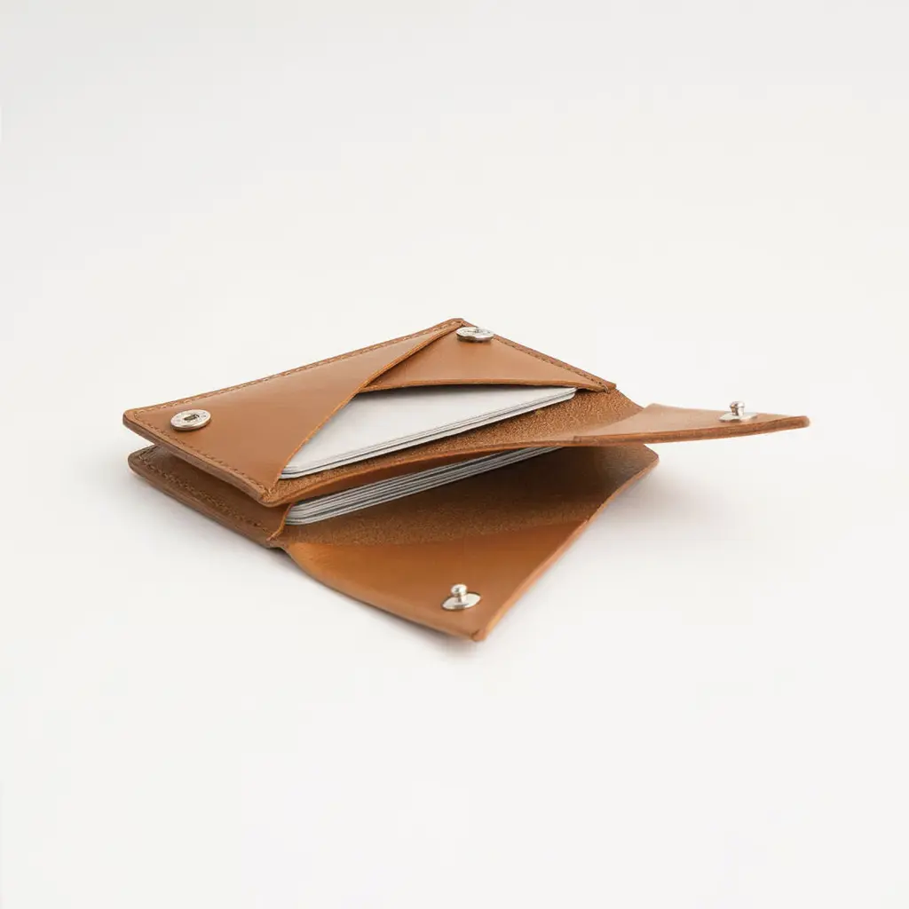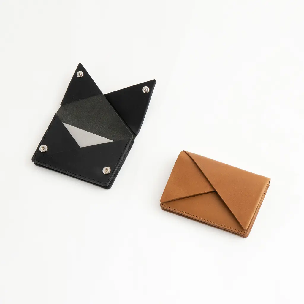 Slim, minimalist and compact, the Slant Card Case Brown from Japanese brand i ro se is the perfect choice for your cards, cash, and small items you want to keep close and secure. The elegantly simple design references the art of origami with two folding leather flaps that create two separate pockets. With each pocket able to hold up to 10 cards, this card case is ideal for everyday use. Supple and soft, the durable leather is specially tanned and infused with an oil treatment to ensure many years of use. Indeed, the Slant Card Case Brown will develop more character over time, as you will leave your mark on the natural material every time you will open and close the pockets. Like a vintage leather case, the Slant Card Case Brown will only get more gorgeous over the years. Also available in a black version, both handmade in Japan.