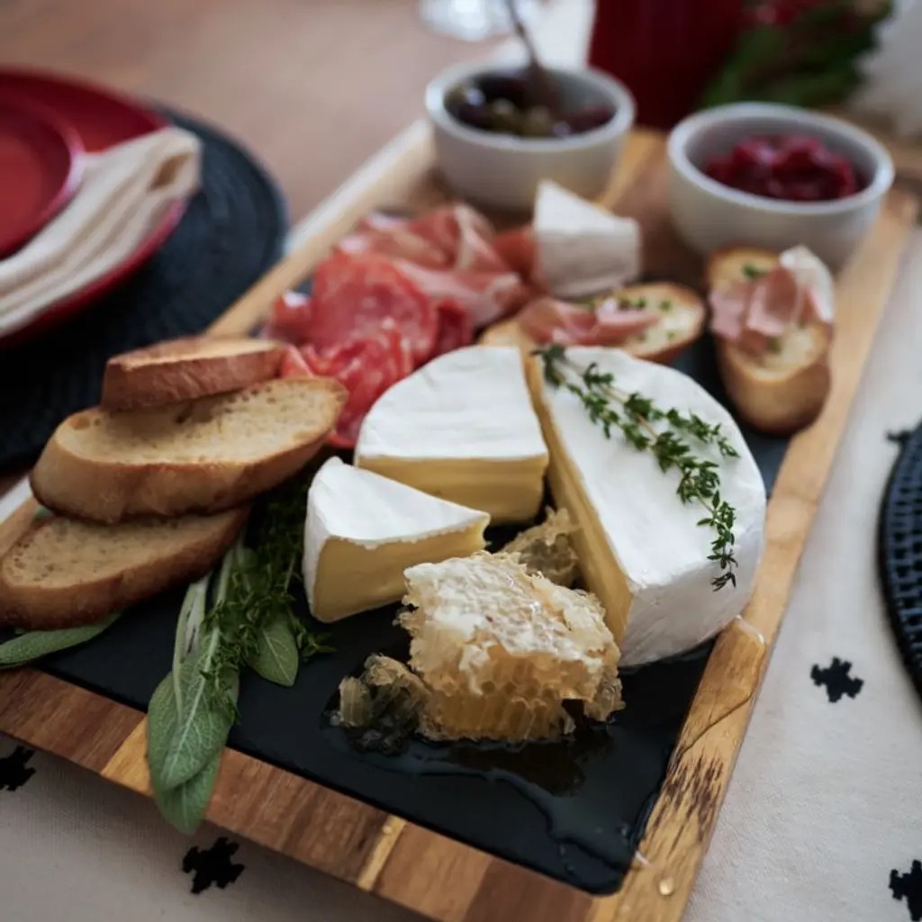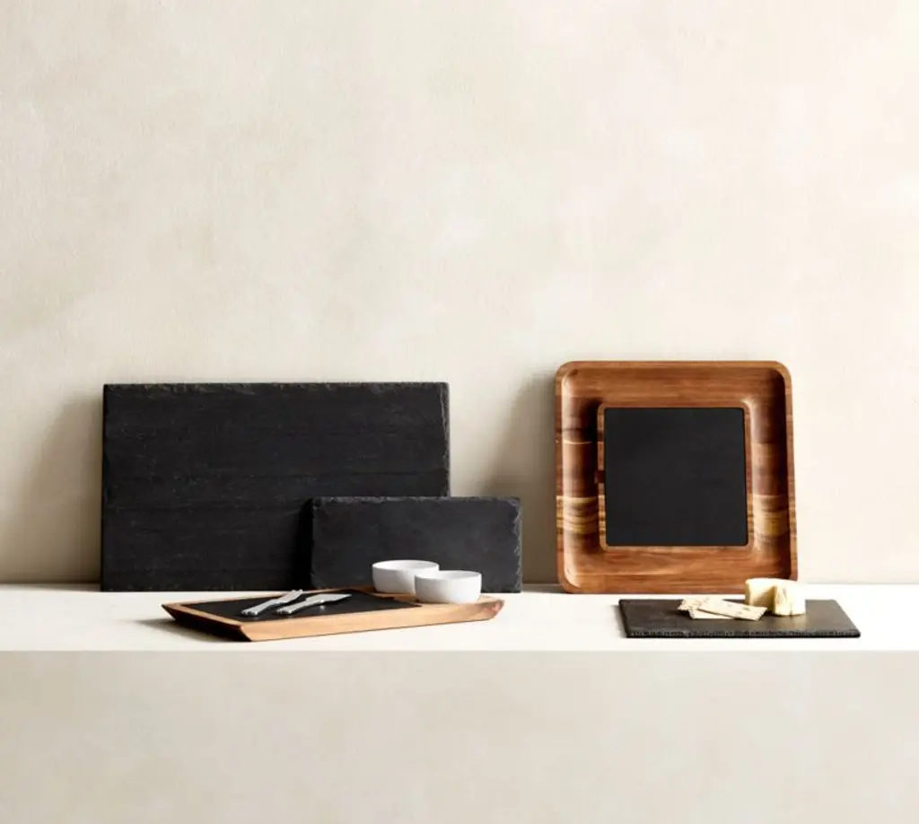 This handsome design unites warm acacia wood and cool slate in a serving board that optimizes serving options. The board serving features recessed slots for two ceramic appetizer bowls and slate board that remove to let you expand the spread and facilitate passing.By choosing FSC®-certified products, you are supporting responsible management of the world's forests.